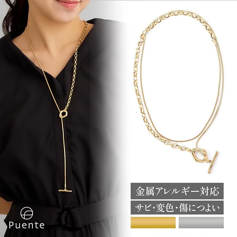【Puente】ネックレス レディース マンテルネックレス ロング ロングネックレス チェーンネックレス ステンレス チェーン シンプル 高見え 長め つけっぱなし 80cm ゴールド 金色