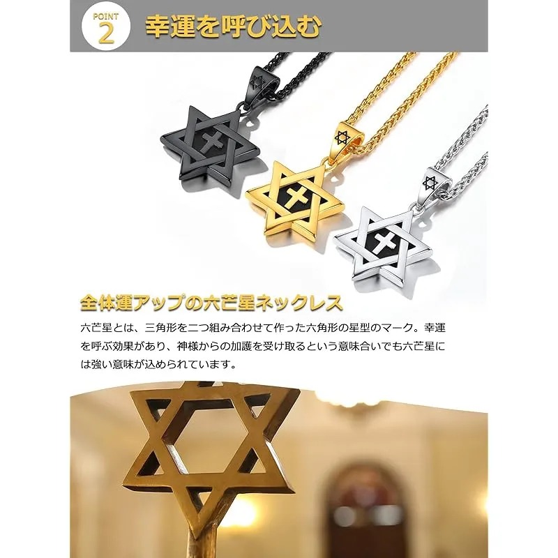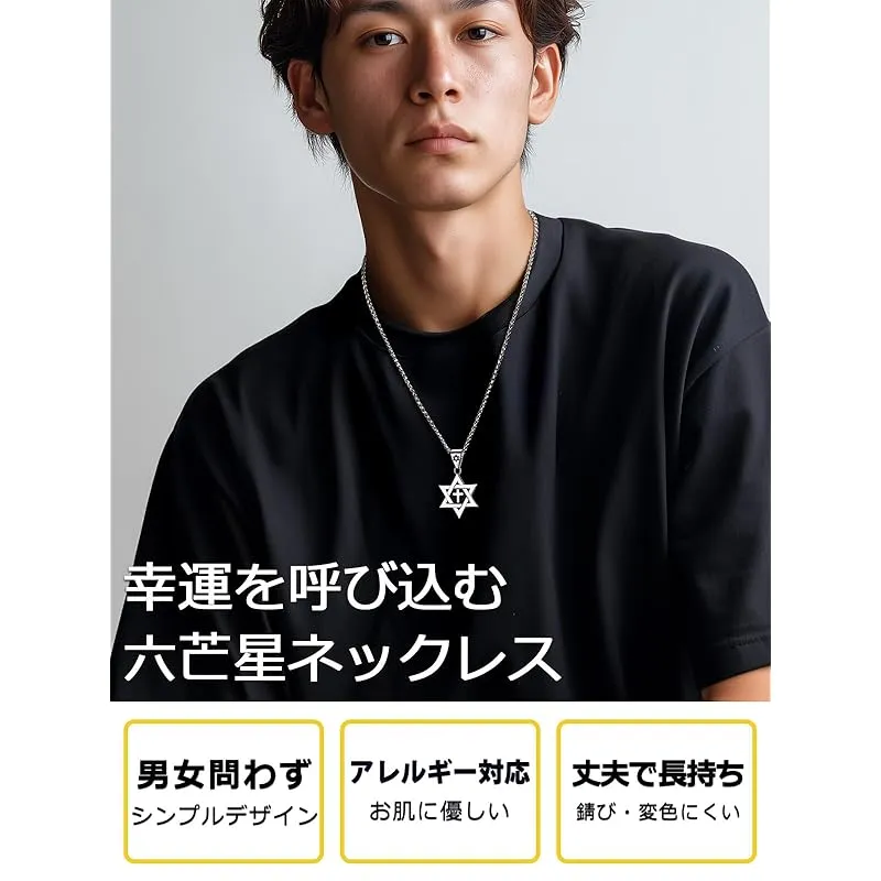 【幸運を呼び込む六芒星ネックレス】神秘的な力を持つとされる六芒星をモチーフにしたネックレス。古くから魔除け・浄化の力があるとされ、身に着ける方のエネルギーを清らかに整え、神聖なパワーを感じられます。幸運を引き寄せるお守りとしておすすめです。