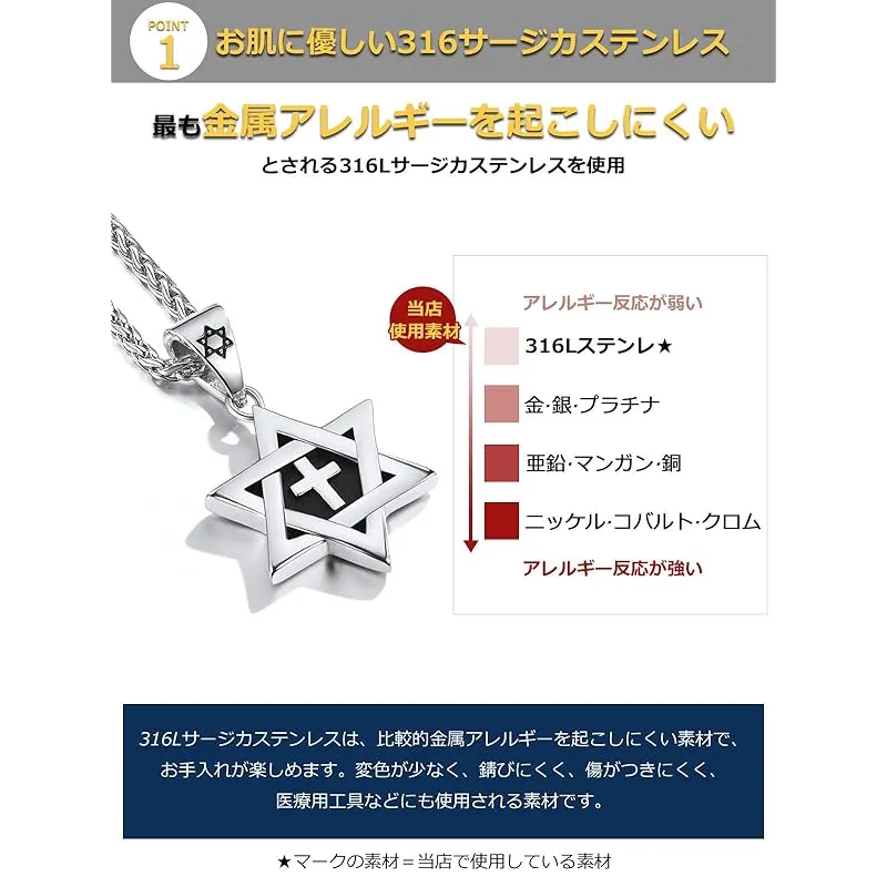 商品名:[ChainsPro] 六芒星 ネックレス メンズ サージカルステンレス 金アレ対応 ヘキサグラム 星 ペンダント お守り プレゼント 男性 シンプル アクセサリー