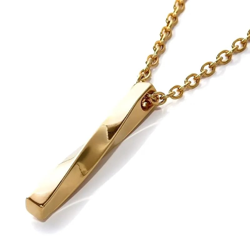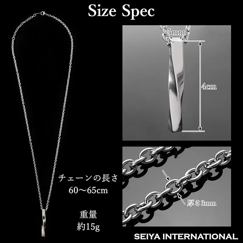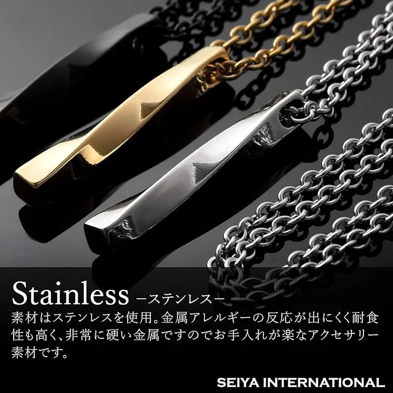 【 人気のメンズネックレス 】シンプルなツイストスティックタイプのネックレスです。メンズネックレスの定番のデザインになります。ツイストされたボディは光の反射により輝きを放ち、先端部分のエッジを効かせたデザインが高級感を演出します。胸元から魅せるスティックペンダントは男性の持つ力強さを極限まで際立たせてくれます。シンプルでおしゃれなネックレスは流行に流されないデザインですのでファッションを選ばず着用できます。シンプルなデザインのツイストスティックネックレスはメンズだけではなく、レディースでもお使いいただけます。