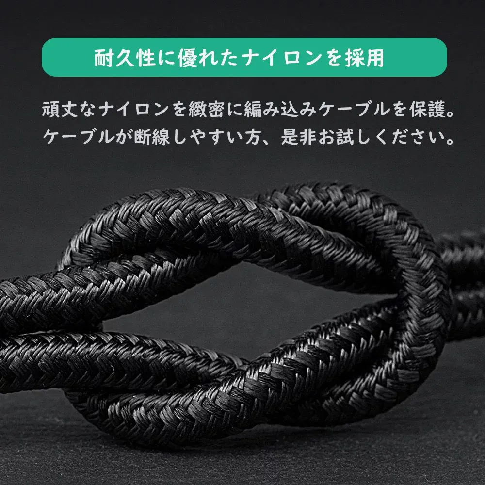 当商品はライトニングケーブルの弱点である「壊れやすさ」を改善するために開発された超丈夫なナイロンケーブルです。