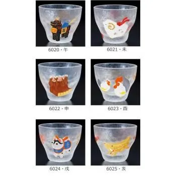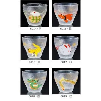 縁起物として親しまれている干支がデザインされた涼しげなガラスの盃です。