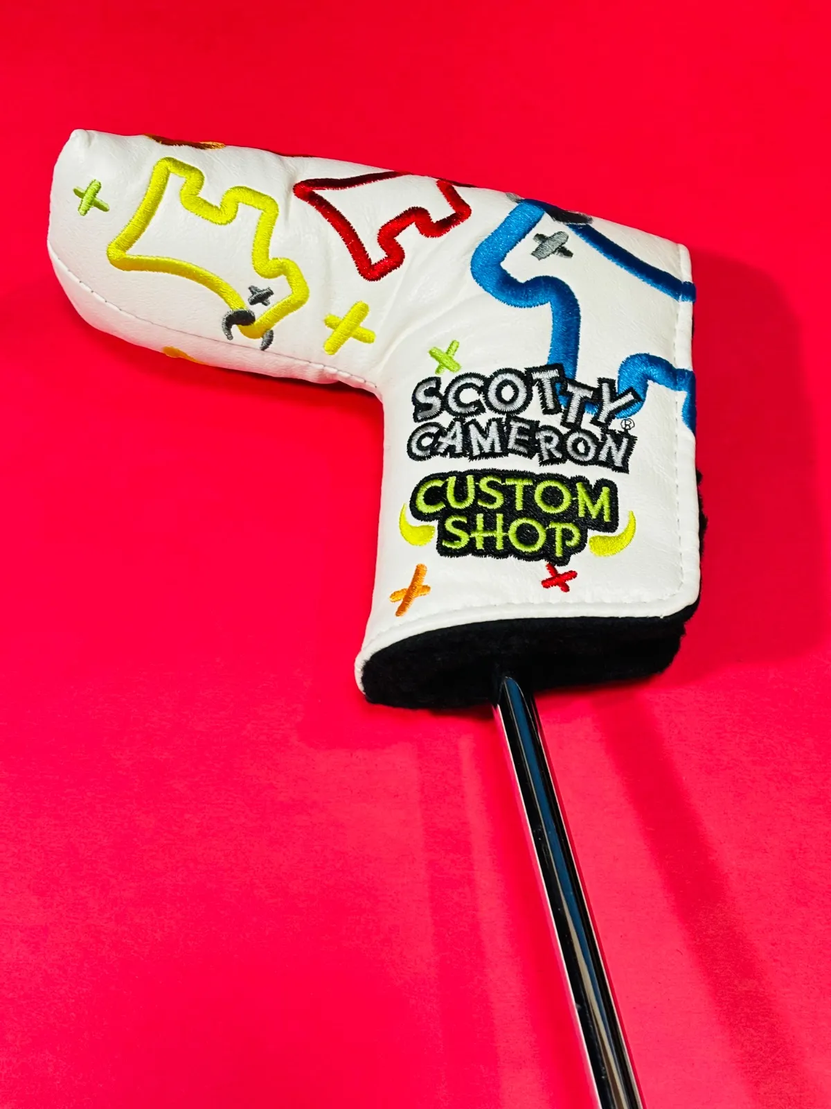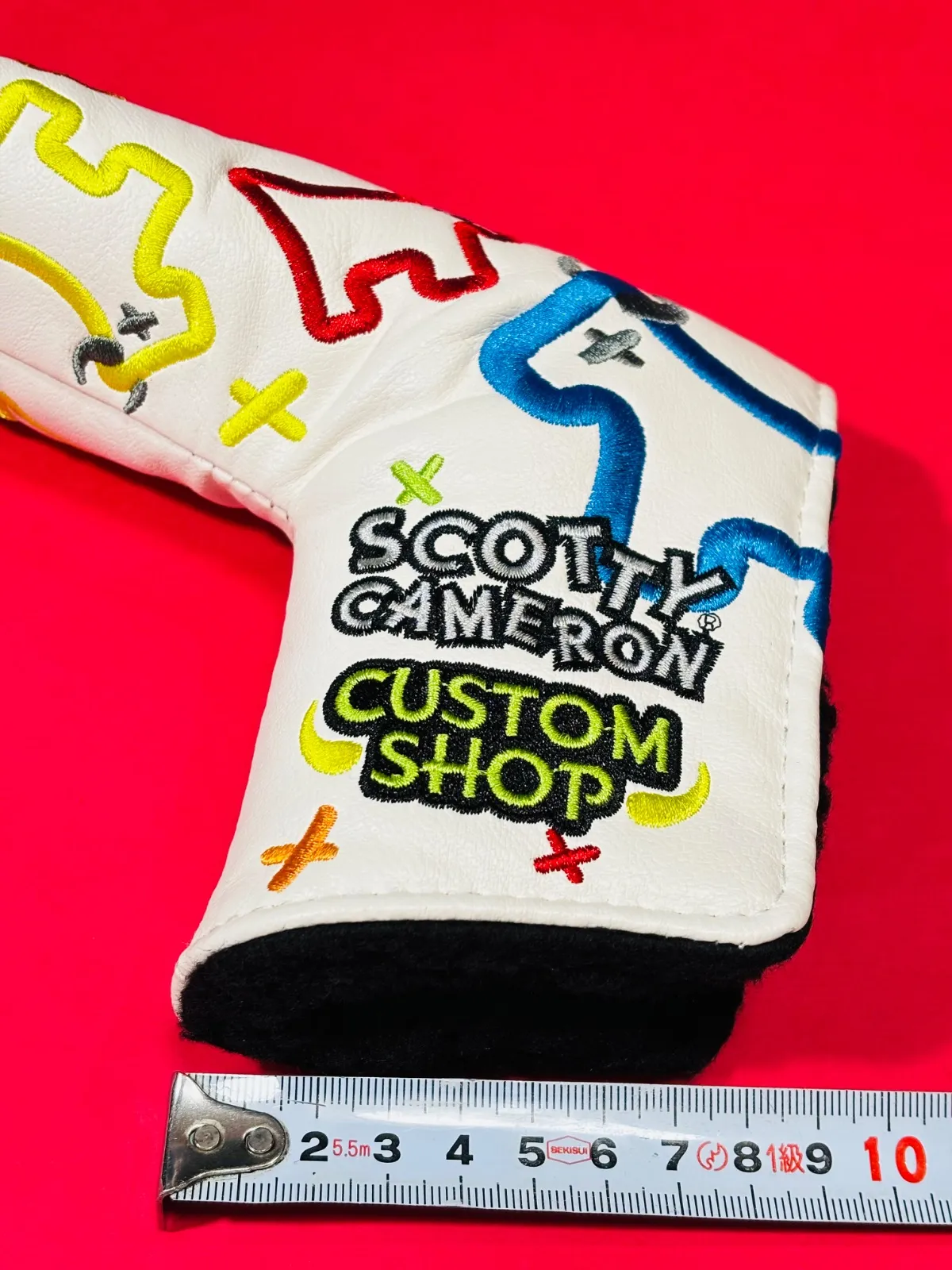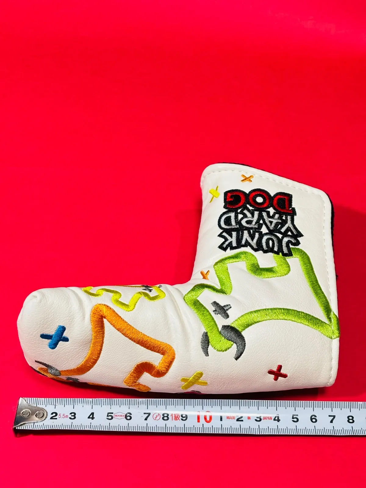 新品未使用 SCOTTY CAMERON CUSTOM SHOP J-Y-DOG ホワイト 写真撮影と検品の為1度開封 海外の最高級ツアー用モデルとして支給された非売品カバーです ツアー支給されるだけあって丁寧に刺繍されており非常にソフトな手触りです ピン型タイプ 小ぶりマレット可 D-45㎜位まで 写真は現物写真です 開閉はマジックテープ式 パターは含みません 期待通りの品質だと思います らくらくメルカリ便にて神奈川県から早い発送準備致します