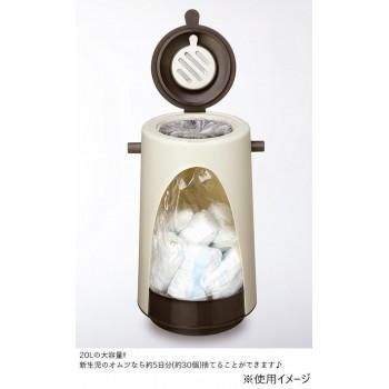 エチレンプロピレンゴム製の蓋&袋止め(インナーキャップ)できっちり密閉し、更にフタの裏にセットできる専用消臭剤で臭いを吸収するおむつペール。20Lの大容量で、新生児のオムツなら約5日分(約30個)捨てることができます♪市販のゴミ袋が使えて便利(※45Lゴミ袋推奨)。ゴミ出しの際は本体をスッと持ち上げるだけで、重くなったゴミ袋を簡単に取りだせます。