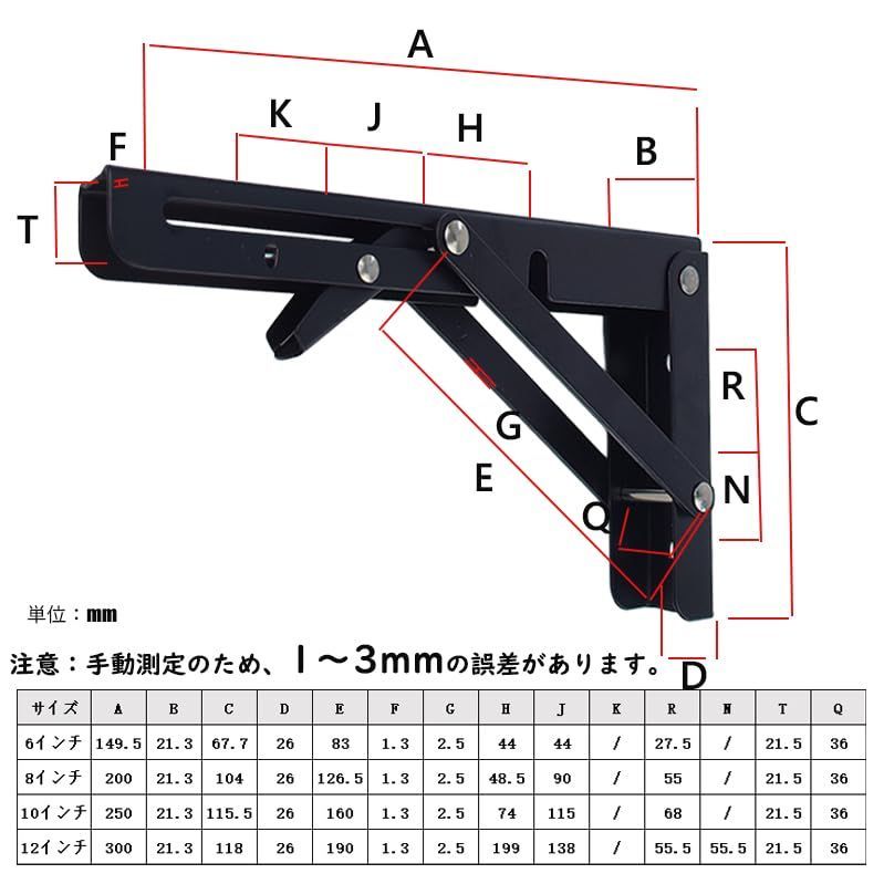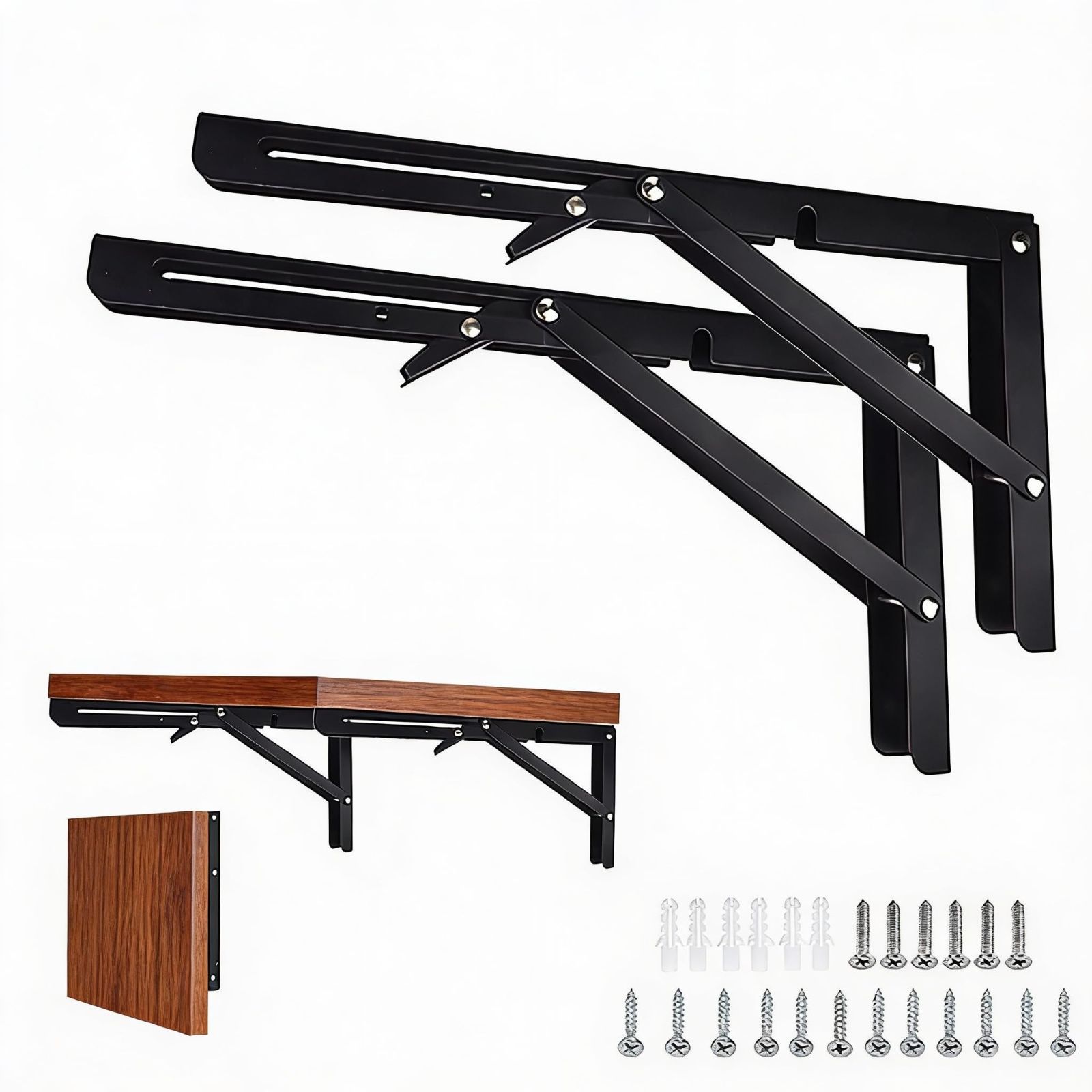 折りたたみブラケット棚受け金具 L字型 耐荷重150kg 壁掛け 2個セット ネジ付き ブラック 吊り棚 DIY 棚支え (2 黒 30CM)