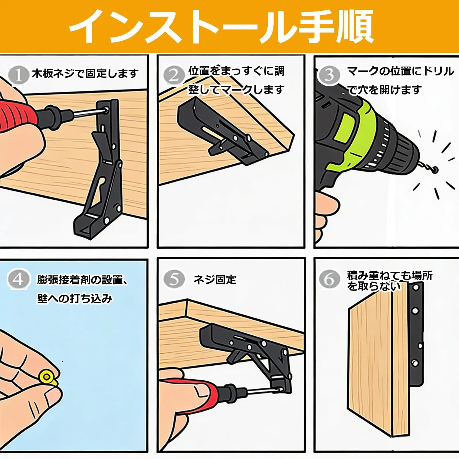 【設置が簡単】DIYが苦手な方でも簡単に設置可能。パッケージには、適切な取り付けアクセサリー(高品質ステンレス鋼製ネジ、拡張チューブ)が含まれており、設置方法もわかりやすく説明されています