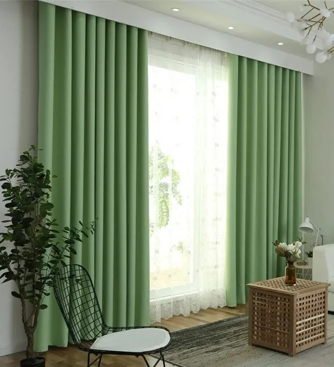 遮光カーテン1級遮光 遮熱 防音 厚手カーテン 寝室 リビング用 断熱 暗幕 出窓用 無地 かーてん (グリーン 100×135cm*2枚)