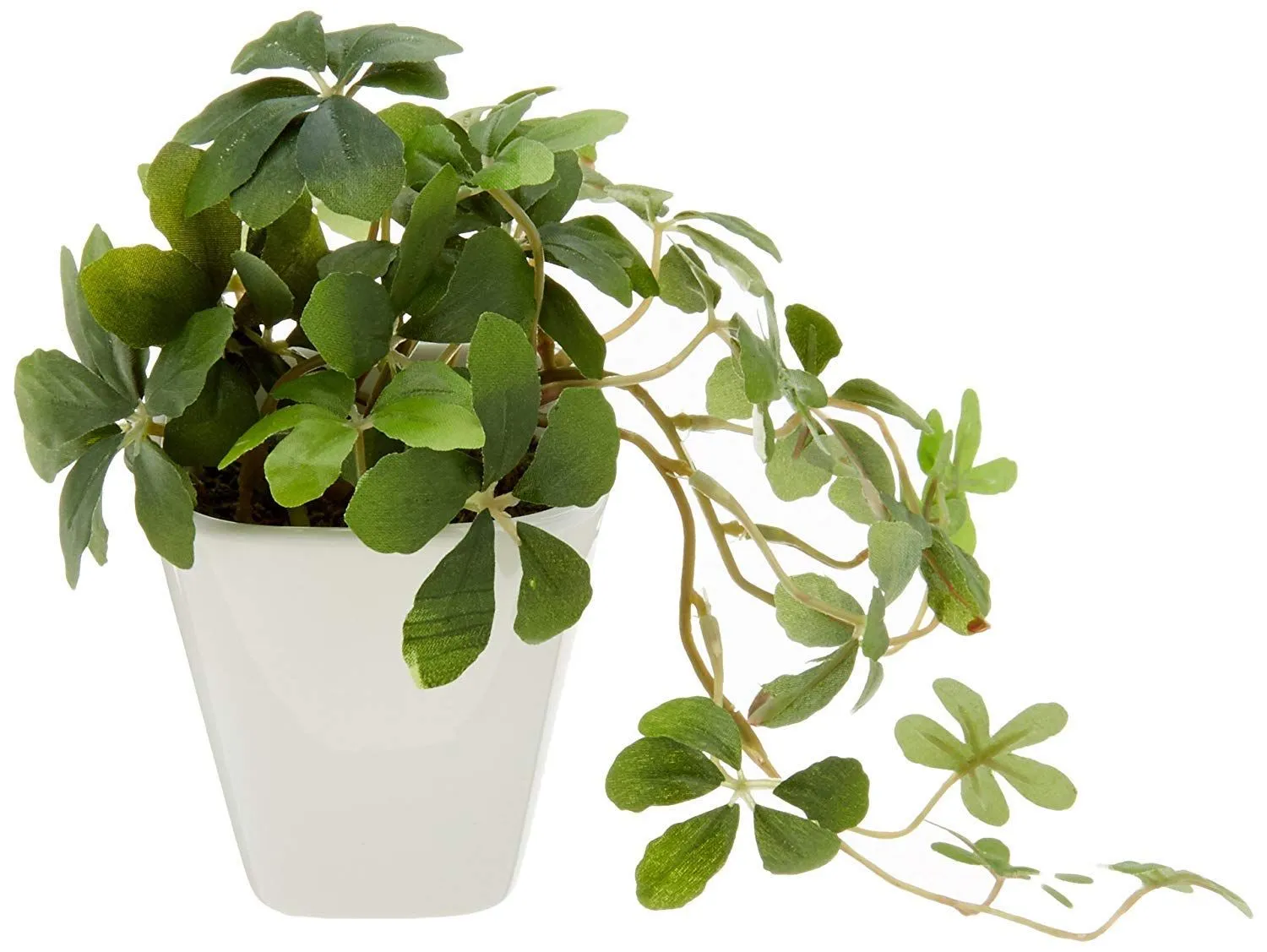 ケーアイジャパン インテリアグリーン 造花 観葉植物 光触媒 フェイクグリーン KU シュガーバイン (全長 14cm 白 陶器 スクエア ポット)