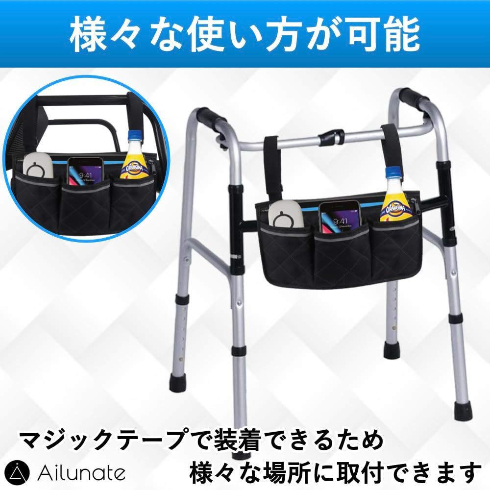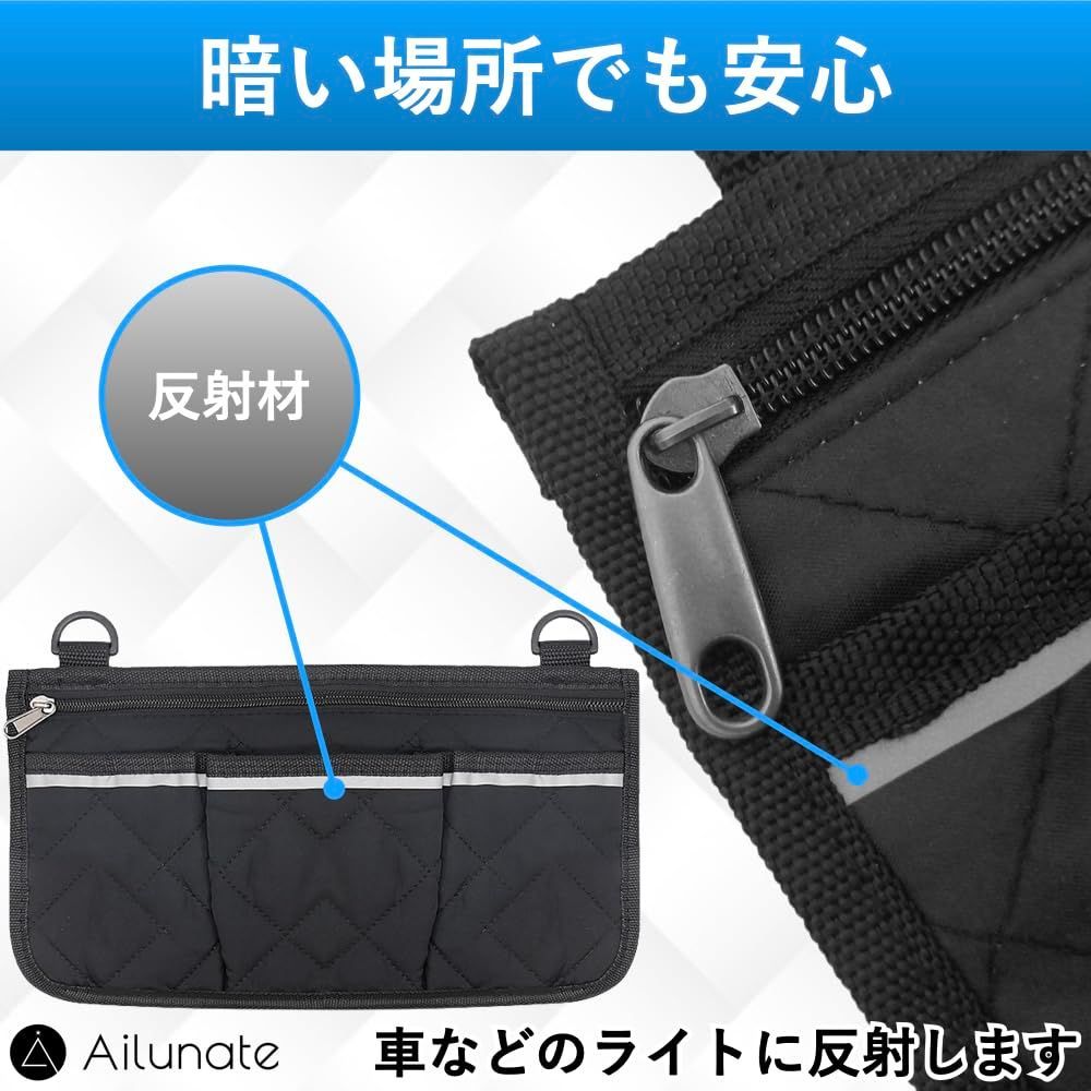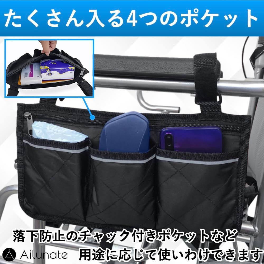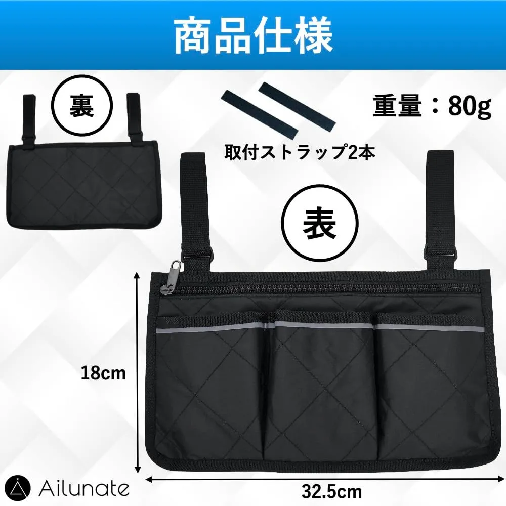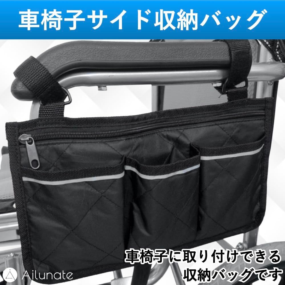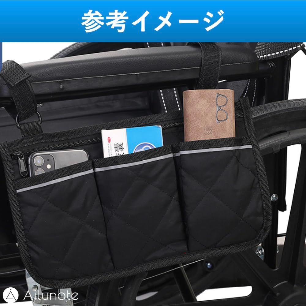 Ailunate 車椅子 サイド 収納袋 バッグ ポケット ポーチ ホルダー 車いす かばん カバー 車イス 小物入れ スマホ ブラック アームレスト