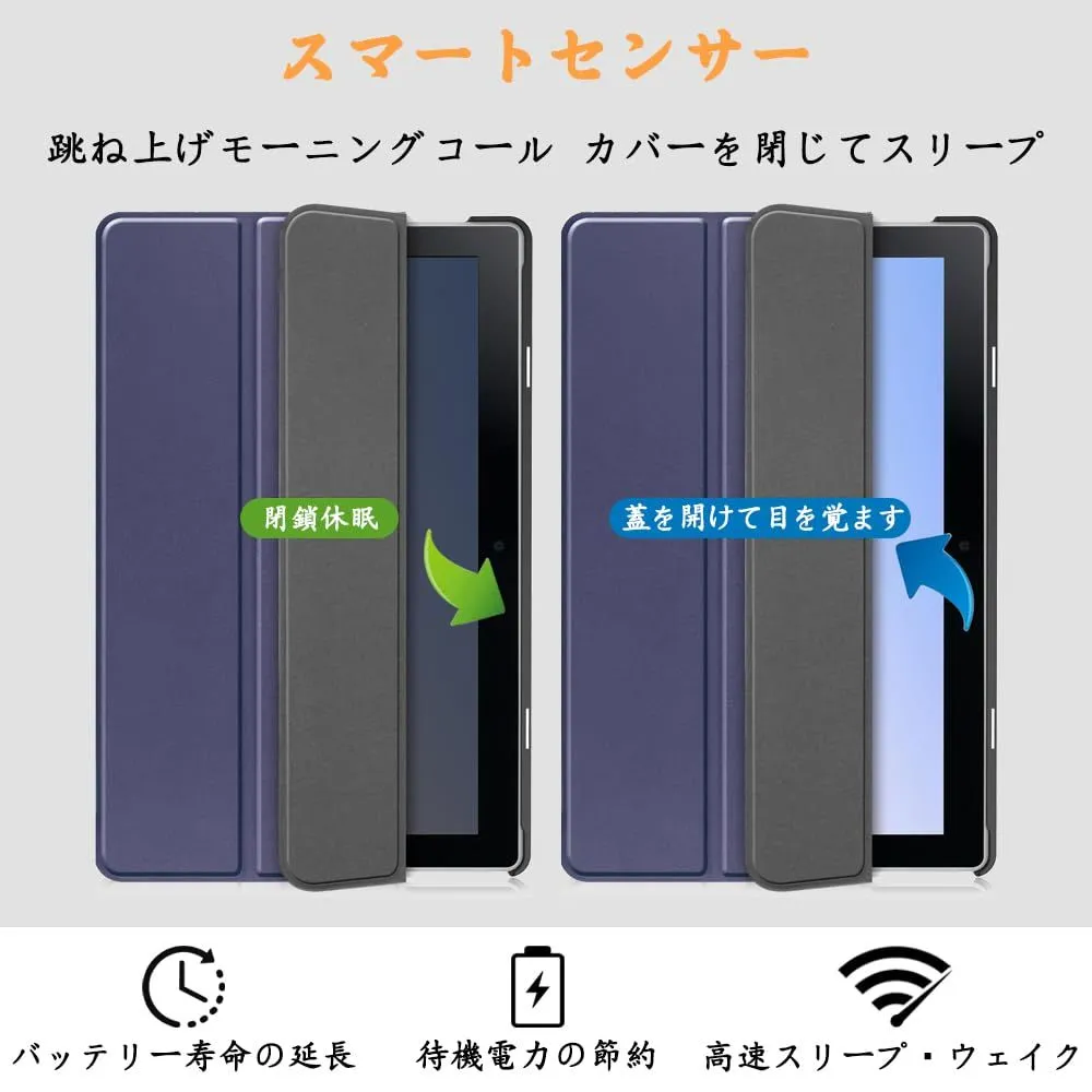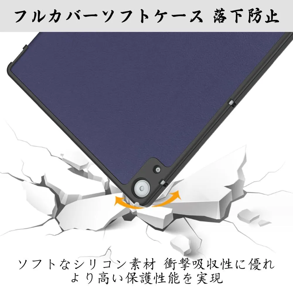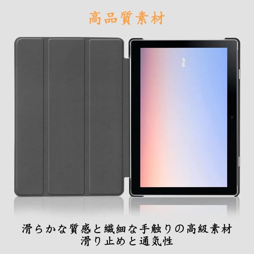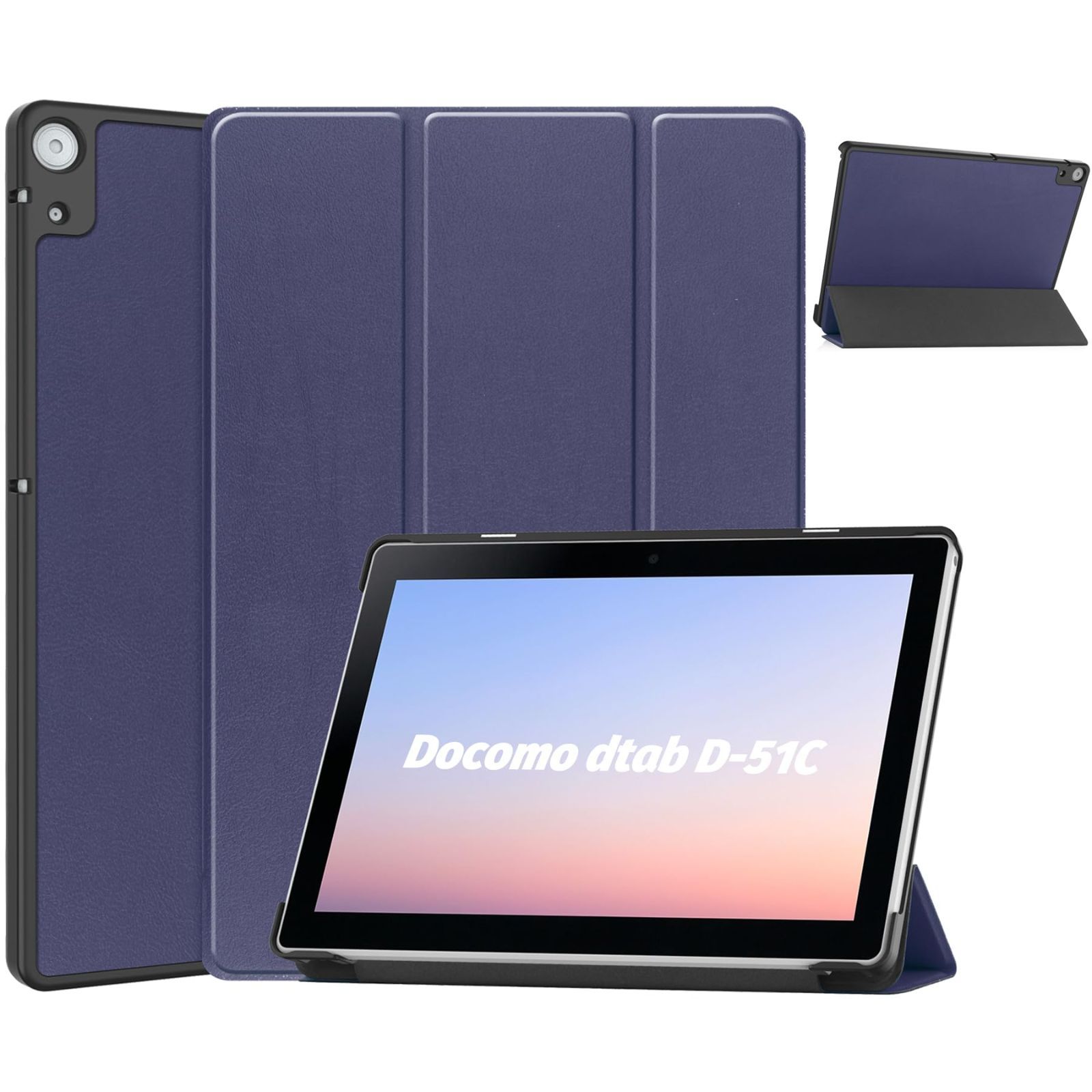 NTT Docomo dtab d-51C 用の ケース docomo dtab d-51C 10.1インチ 用の ケース 新型 カバー NEWモデル スタンド機能付き 保護ケース 三つ折 薄型 高級PU レザー 全面保護型 dtab d-51C 2022年発売 対応 (ネービーブルー)