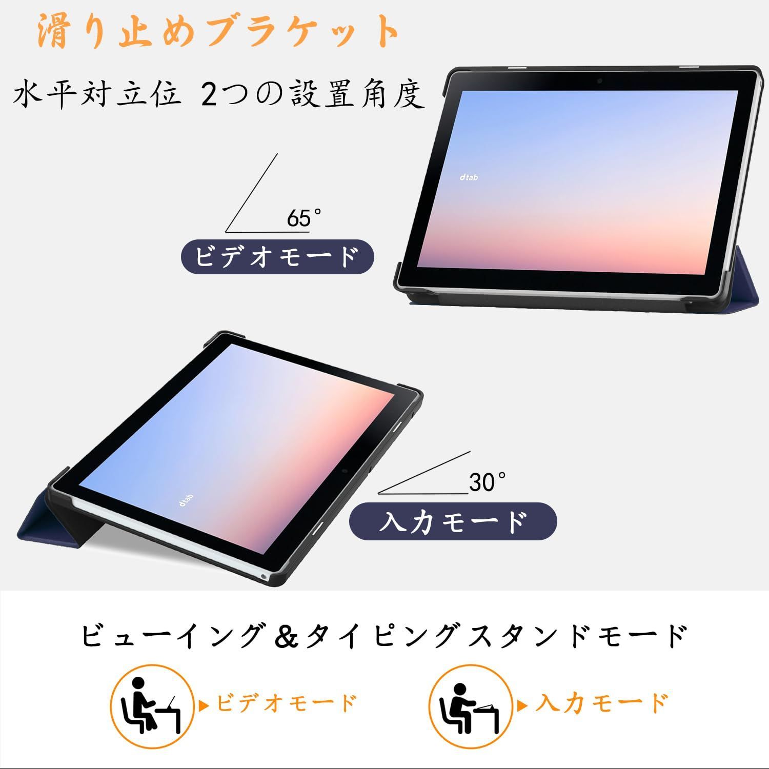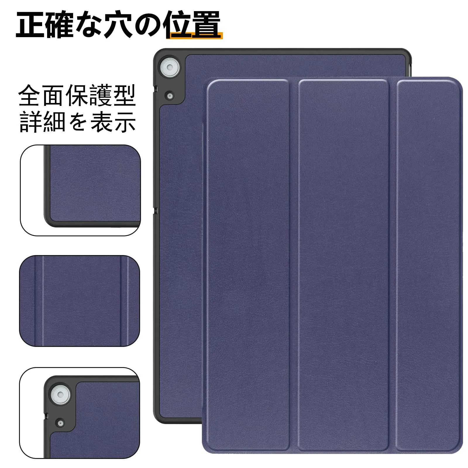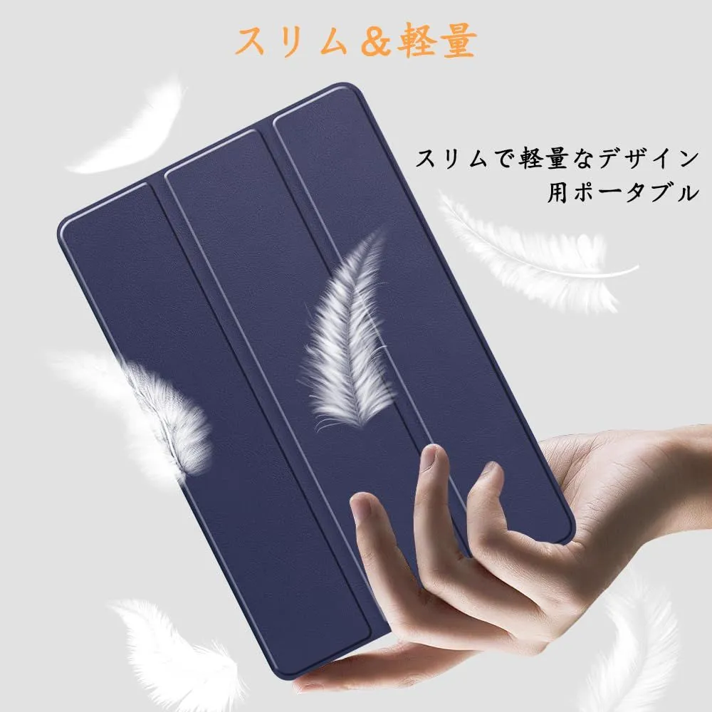 NTT Docomo dtab d-51C 用の ケース docomo dtab d-51C 10.1インチ 用の ケース 新型 カバー NEWモデル スタンド機能付き 保護ケース 三つ折 薄型 高級PU レザー 全面保護型 dtab d-51C 2022年発売 対応 (ネービーブルー)