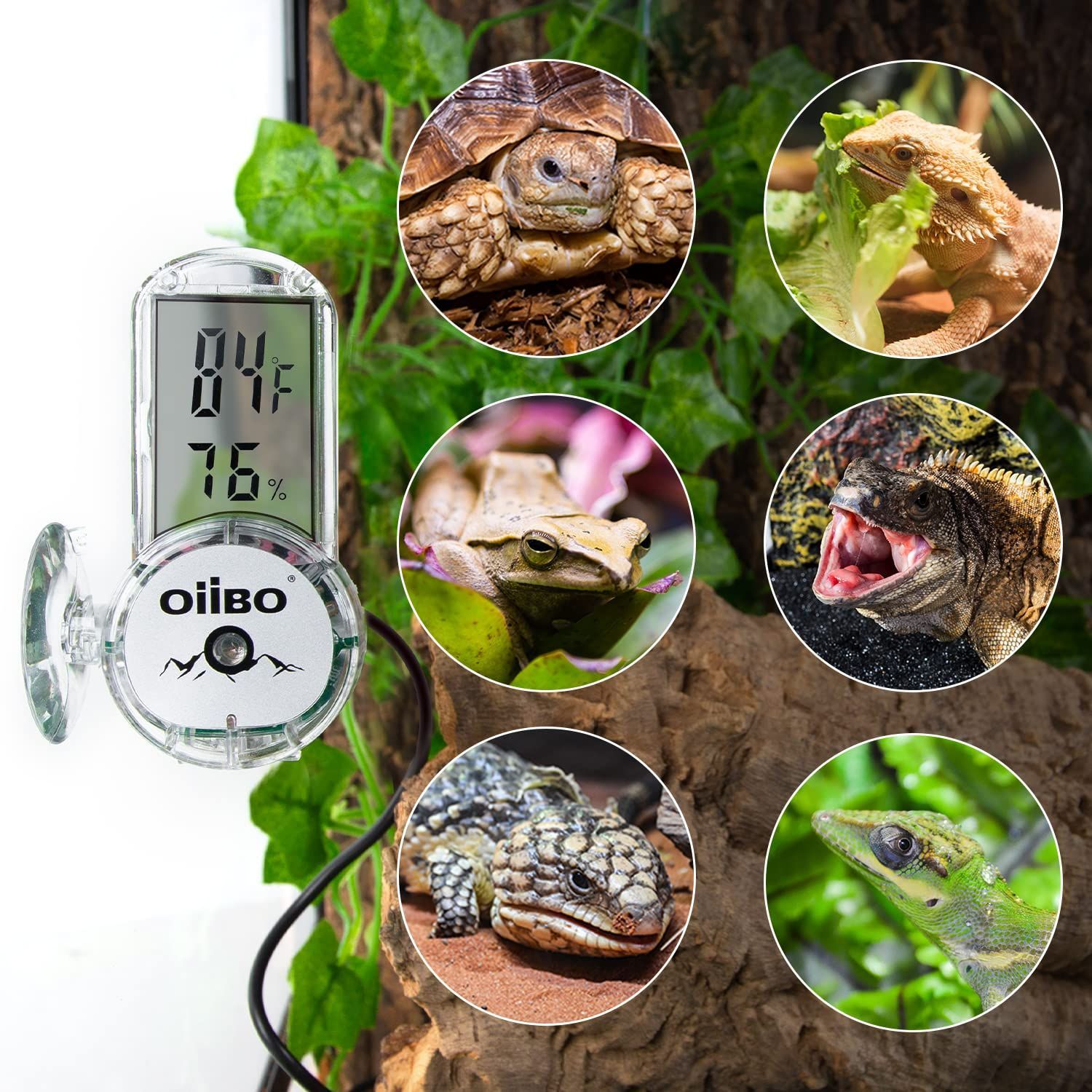 爬虫類 温度計 湿度計 デジタル温湿度計 4面設置 LCDディスプレイ 高精度 温湿度管理 吸盤付き 爬虫類 両生類用 デジタル サーモメーター 温湿度計