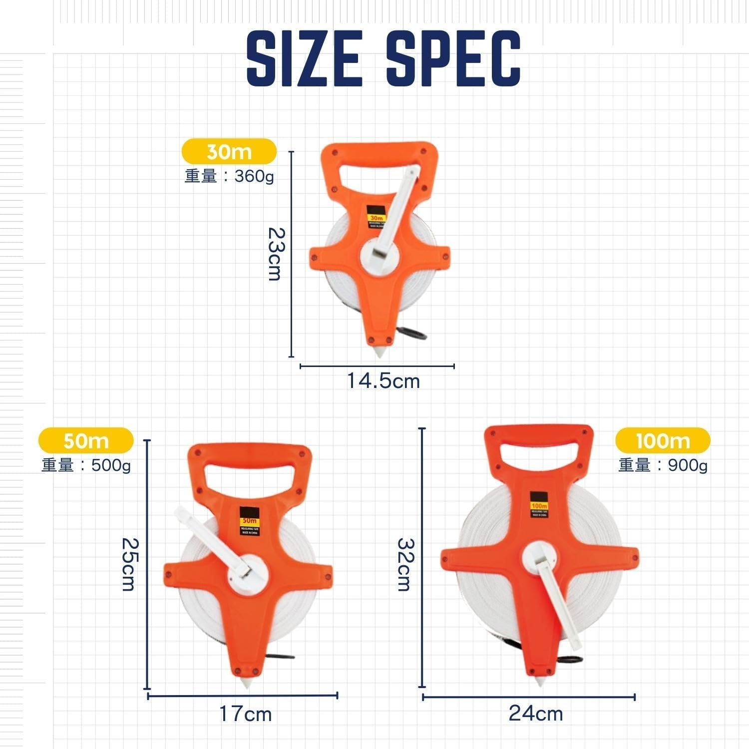 【商品概要】陸上競技などグラウンド競技での測定や鉄道、土木関係の測量に適したテープメジャーです。小型軽量タイプで持ち運びに便利です。土地計量、建築工事、野球、サッカー、運動会など幅広いシーンで使用されています。
