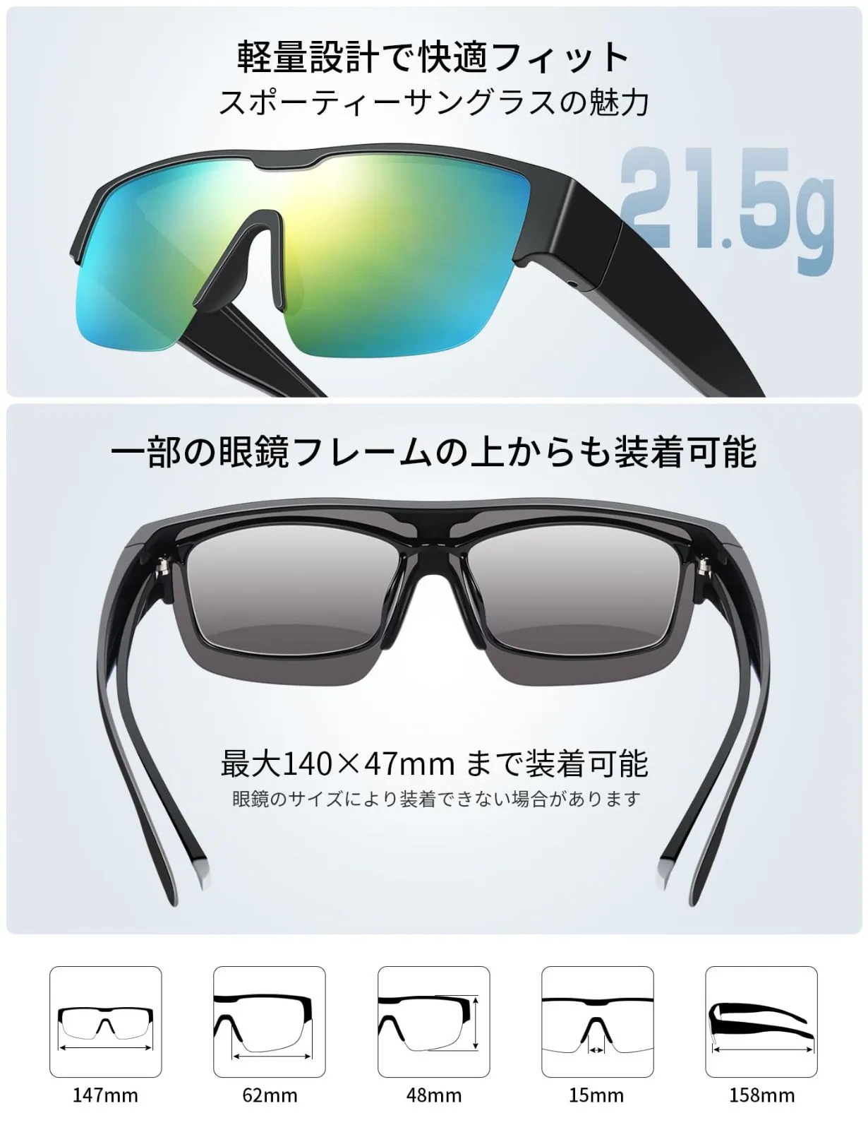 【近視対応・一部眼鏡フレーム対応】 最大140×47mmまでの眼鏡フレームの上からも装着可能。普段メガネをかけている方でも手軽にUV対策が可能です。軽量設計で快適フィットを実現し、長時間の使用でも負担を軽減します。