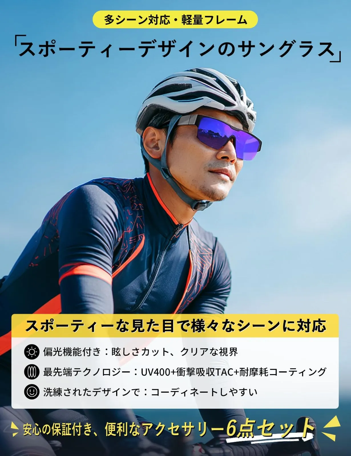 スポーツサングラス 偏光 ハーフリム UV400 軽量21.5g 4色展開 釣り ゴルフ ドライブ 登山 キャンプ アウトドア 近視対応 オーバーグラス 男女兼用 豪華6点セット