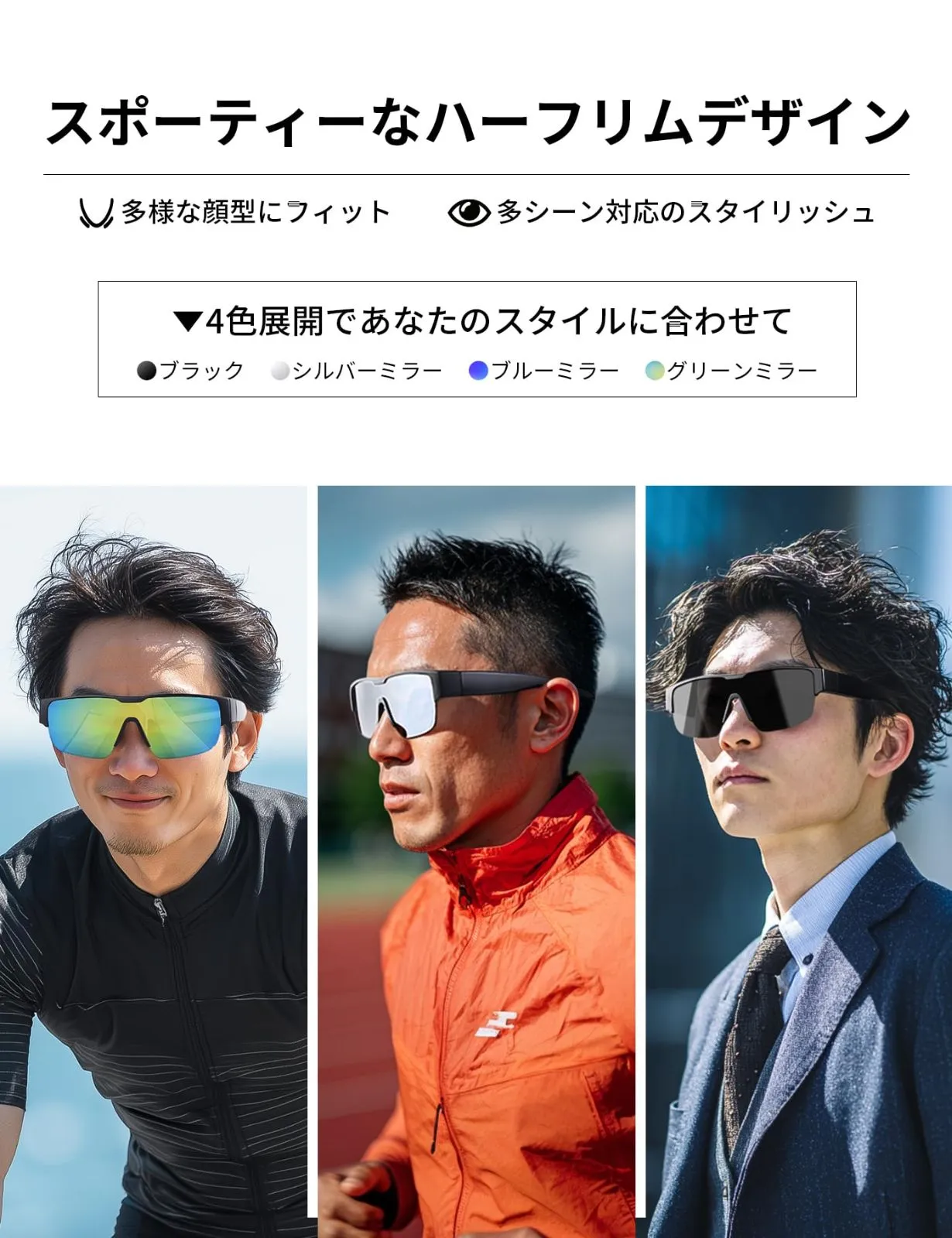 【多シーン対応・軽量フレームで快適性を追求】 わずか21.5gの超軽量設計により、長時間の着用でも疲れ知らず。スポーティーなハーフリムデザインは多様な顔型にフィットし、釣り・ゴルフ・ドライブ・軽登山など様々なアウトドアシーンで活躍。洗練されたデザインでコーディネートしやすく、アクティブなライフスタイルを支える最高のパートナーです。