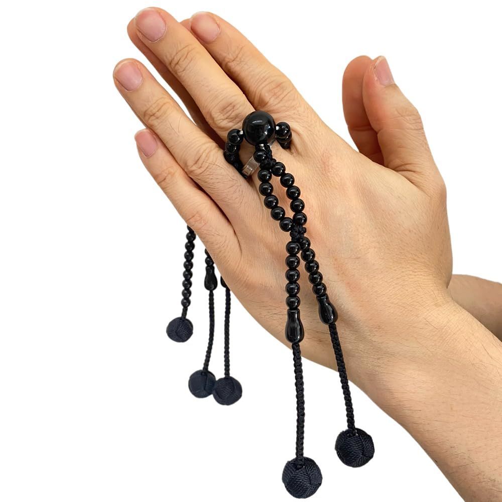 商品名称:妙蓮花 創価学会用 念珠(数珠) 黒 PC 尺 ブラック 男性女性兼用 黒/灰藤小田巻梵天房 主玉:6.5ミリブラック玉( アクリル製) 四天玉:4ミリ新水晶(アクリル製) 親玉:15ミリブラック玉(アクリル製) 房の色:黒色小田巻梵天房