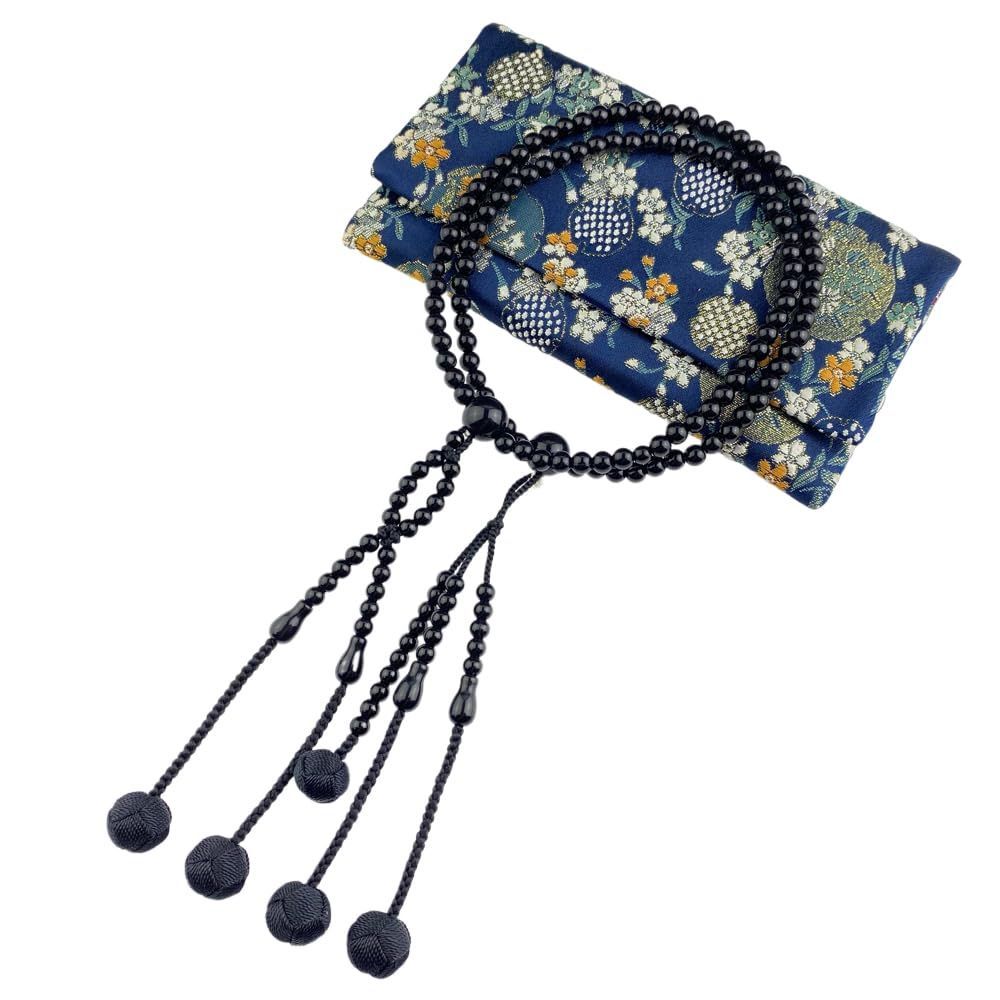 妙蓮花 創価学会用 念珠(数珠) 黒 赤 PC玉 尺 ブラック Mサイズ 男性女性兼用 数珠+数珠入れセット 小田巻梵天房 SGI 数珠 SGI praying beads 尺0 (黒玉+黒色房)