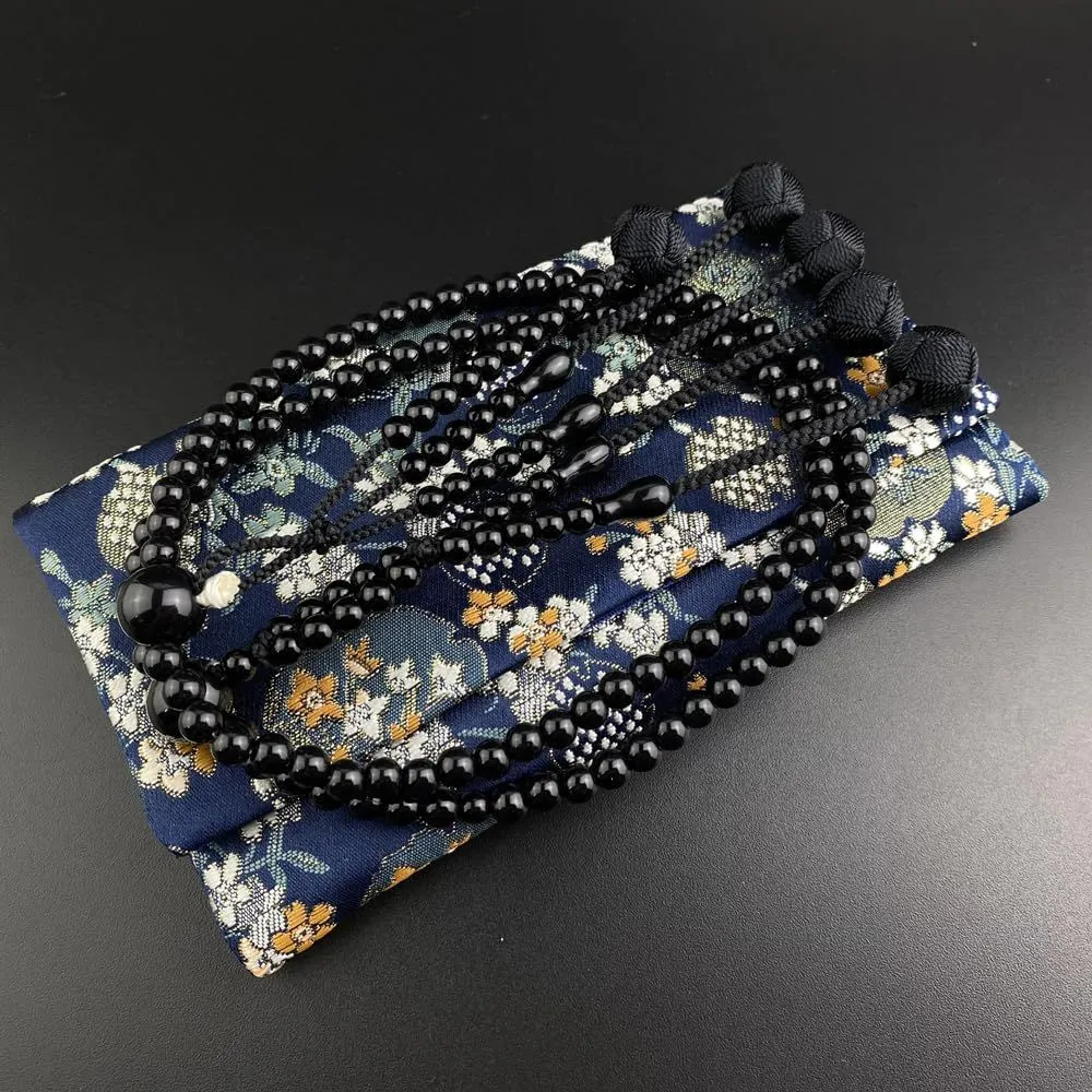 数珠袋(念珠入れ)をお付け致します。サイズは縦9cm×横17cm,素材は手になじみやすい、やわらかな織錦です。留め具はマジックテープで、開閉が簡単です。