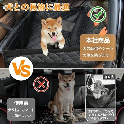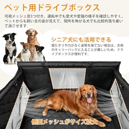 【型崩れ防止・通気性】頑丈でサポートパイプを活用することにより、型崩れを防ぎます。わんちゃんがボックス内で騒いでも、形を維持することが可能です。3面のメッシュ窓で通気性が良く、飼い主がペットとお互いに見え、ペットの不安感を減らす。夏場の蒸れを防止する犬車に乗せるグッズ。家の中でもベッドとして使えるので、愛犬が慣れた環境でドライブできます。