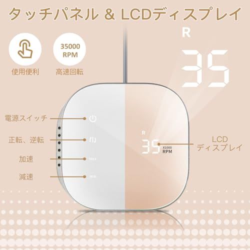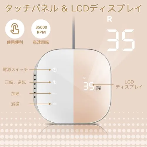 『タッチパネル搭載&液晶画面』:タッチ感度は本体と一体で、液晶画面は作業中のスピードと回転方向をはっきり表示されます。ネイルケアはもっと現代化、科学化があります。