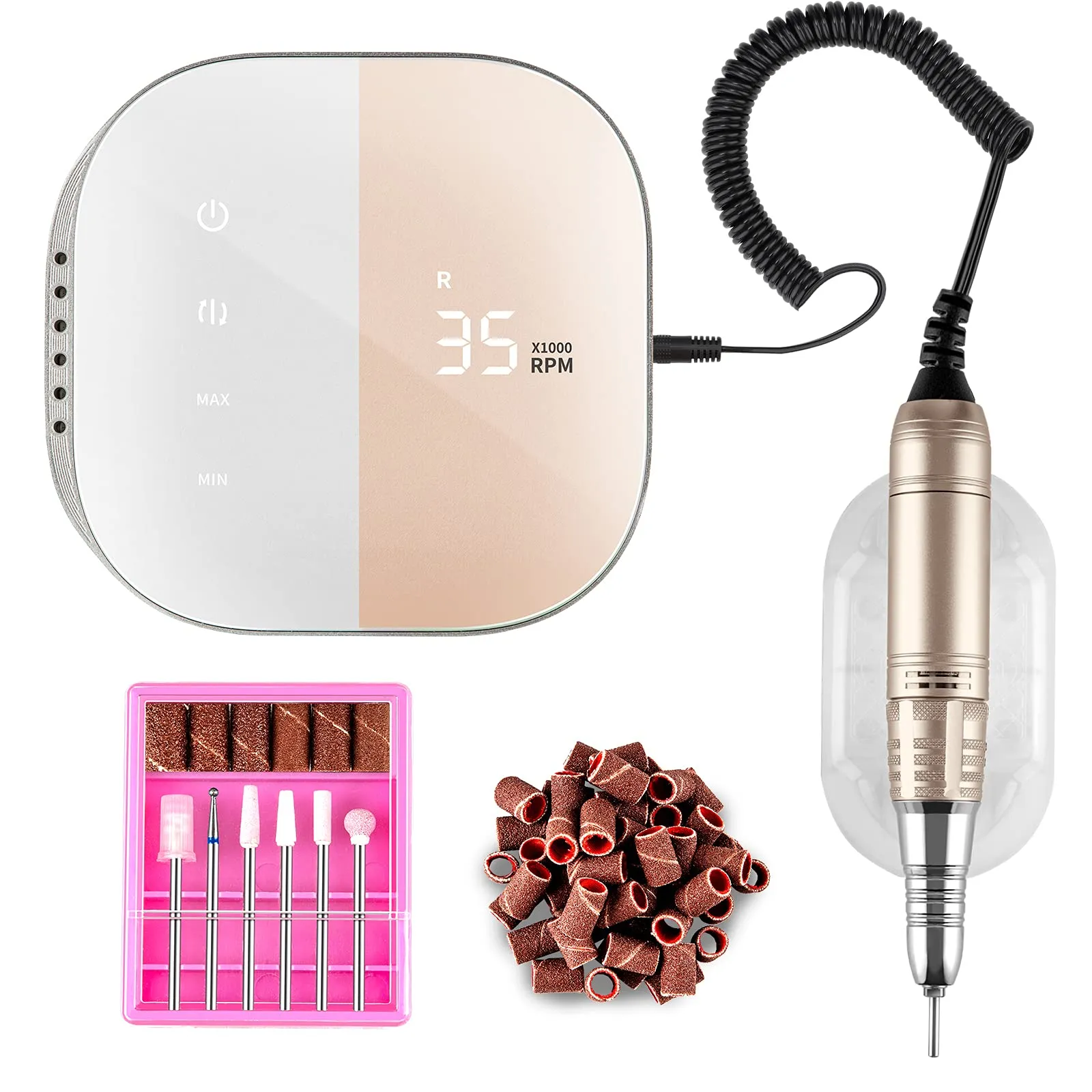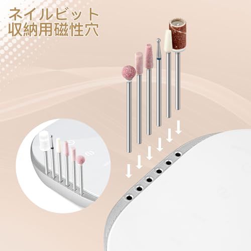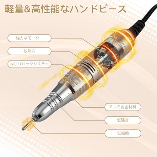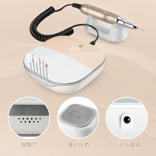 『機能強大&使用便利』:回転速度を0から35000 rpmまで自由に調整できます。 また正転・逆転の切替が自由にでき、使い勝手がいいです。ビットの種類が多く、自由に取換え可能で、より便利になり、1台多機能 爪の形修正・爪表面の凸凹のケア・艶出し・ジェルオフなど、色んな使い方があり、日常的なネイルケアにも便利です。