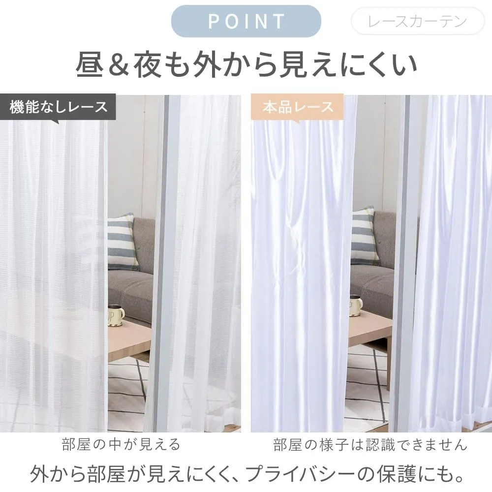 【春の光とプライバシーを両立|昼夜目隠しミラーレース】 セットのレースカーテンは、外からの視線を遮るミラー機能付き。日差しが明るくなる春先でも、室内を隠しながら自然な光を取り込みます。夜間に電気をつけても外から人影が見えにくいため、新居での防犯対策を重視したい方にも選ばれています。