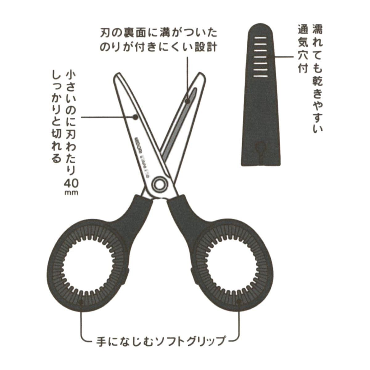 刃わたりが40mmあるので、小さくてもしっかり切れるハサミです。ハンドルは安定して握りやすいソフトグリップ。