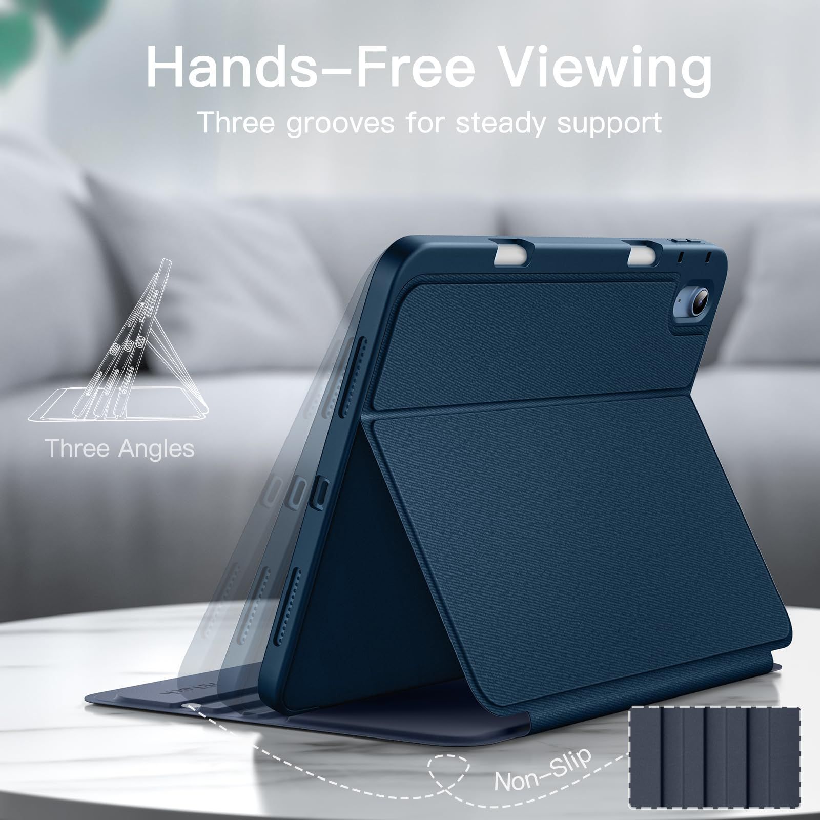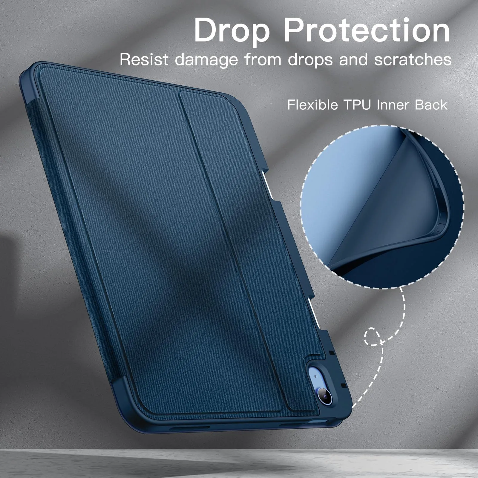 JETech iPad(A16)ケース 第11/10世代(2025/2022モデル)用Pencilホルダー付き スリムフォリオスタンド保護タブレットカバー マルチアングルの視聴 (ネイビー)