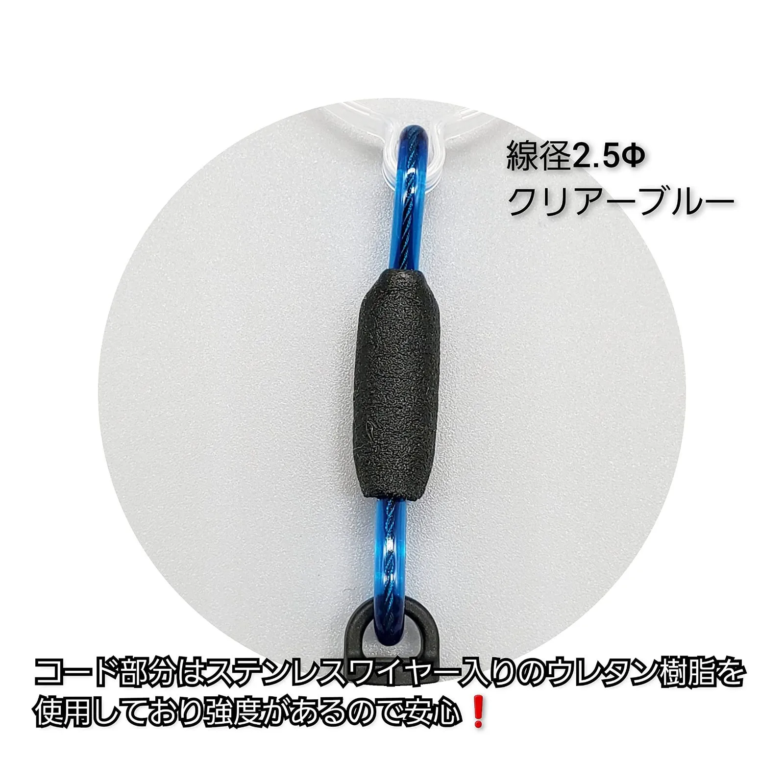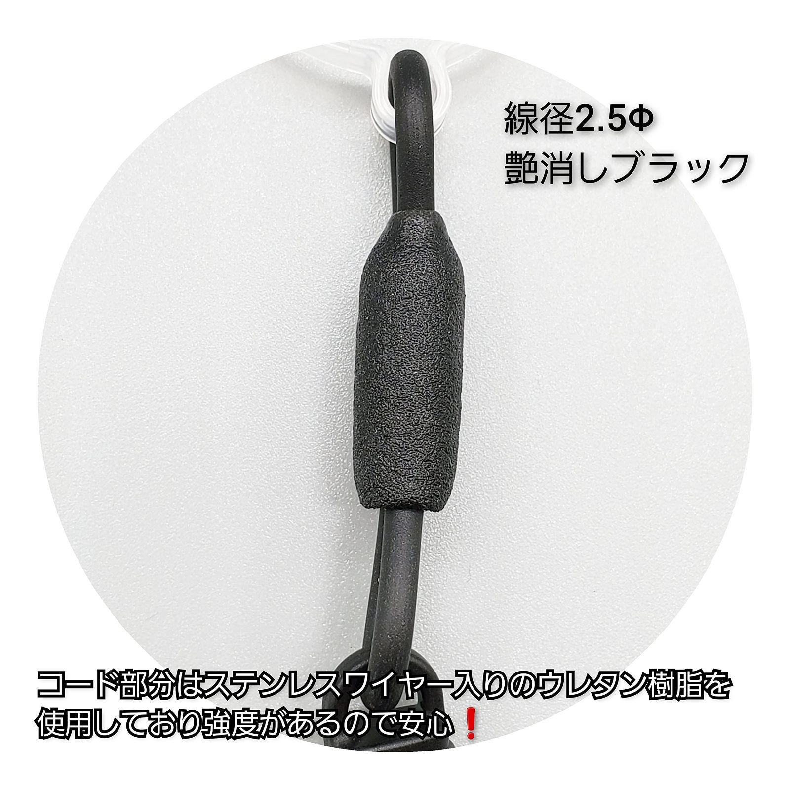 繋ぎ部分にはステンレスワイヤー入りのコードで強度UP!