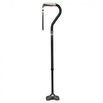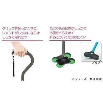 グリップを握ったときにシャフトがじゃまにならず、しっかり握れます。ねばりある杖先がしっかり地面をとらえ、斜めについても滑りにくいです。1本杖に比べて接地面積が広いので安定感があります。