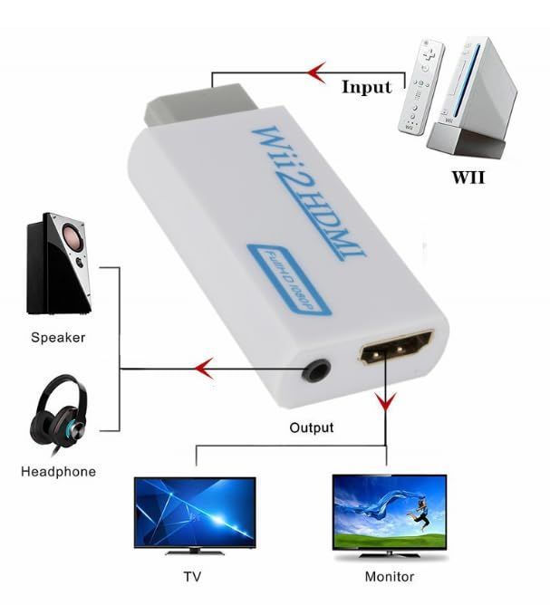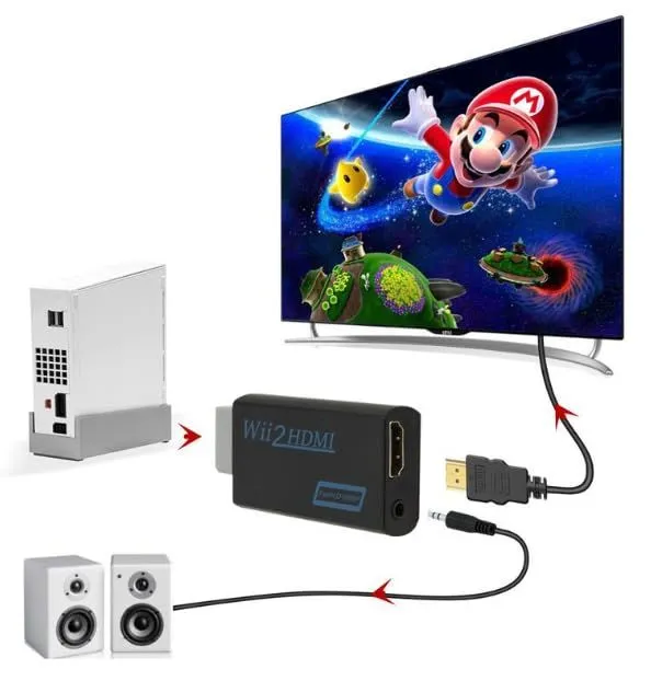 ゲーム機WiiのシグナルをHDMIに変換するアダプターです。HDMI出力は1080pの高画質画面です。