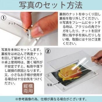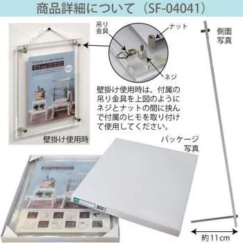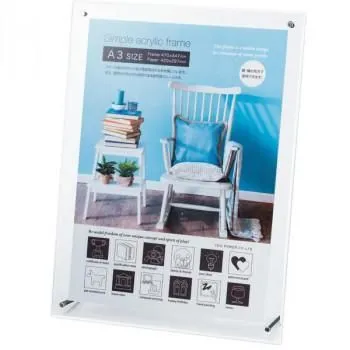 壁掛・卓上両用のシンプルなアクリルフレームです。写真だけでなくお店のメニューやポップなどにも使えます。
