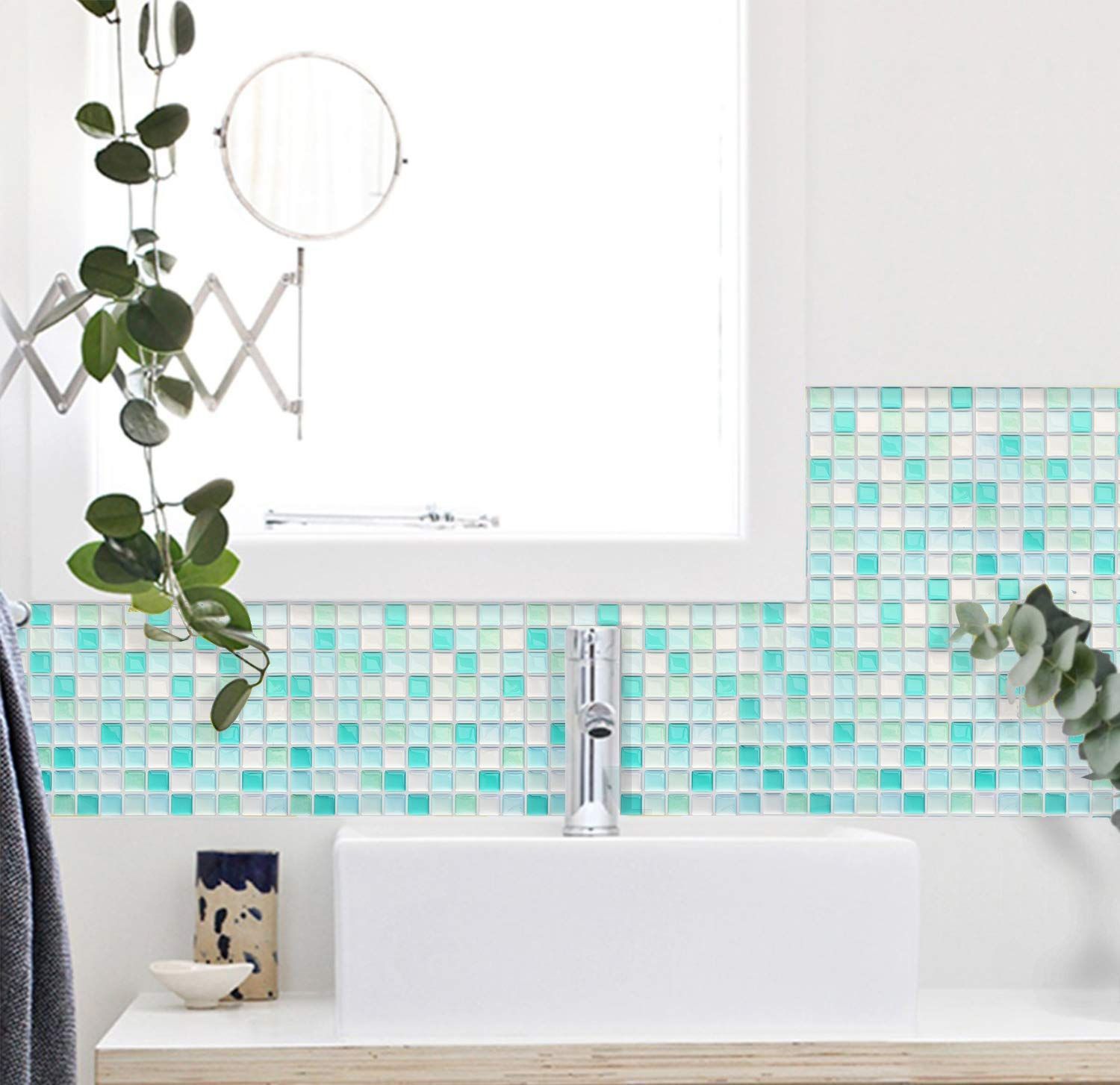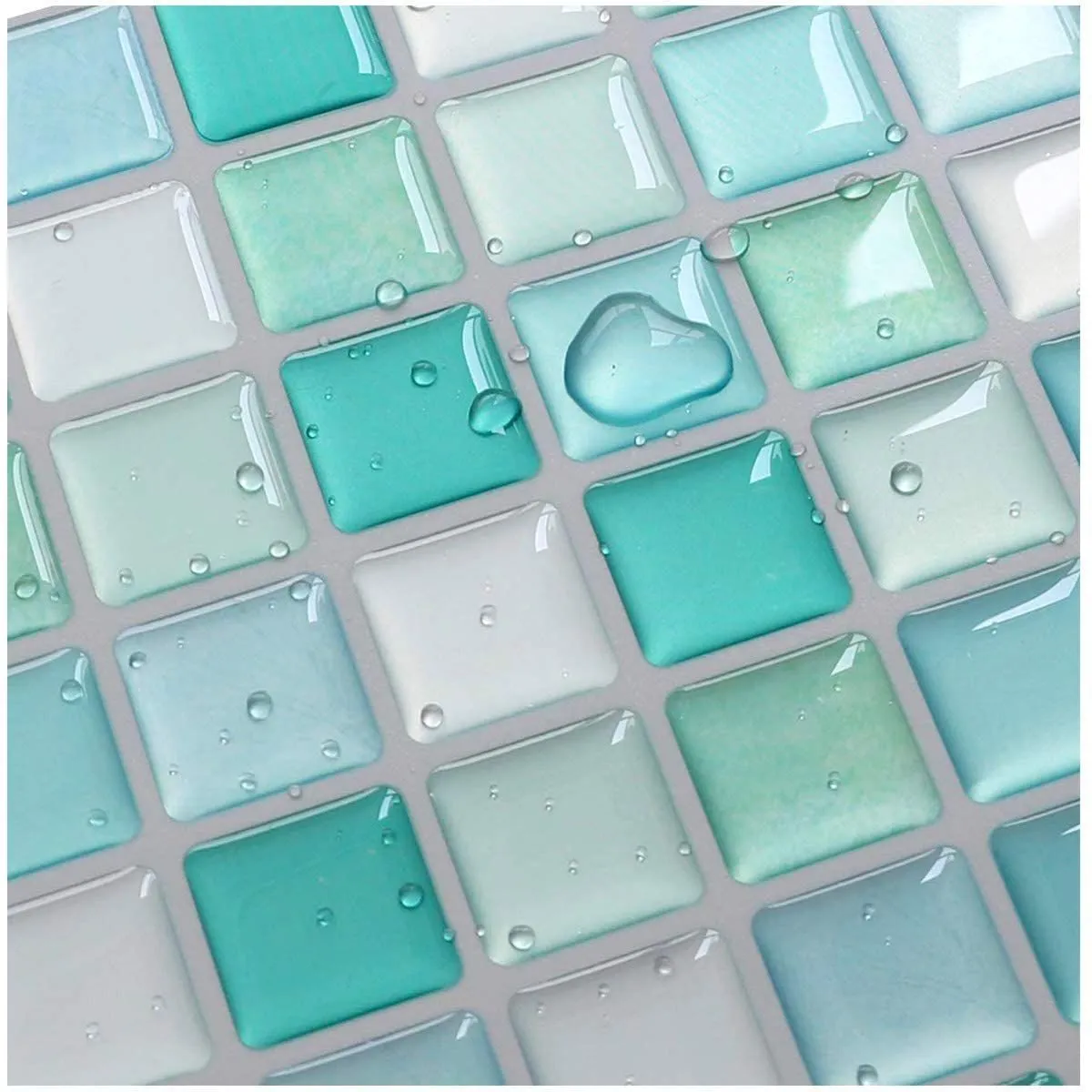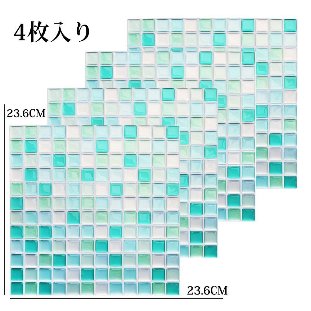 Yoilline タイルシール グリーン 賃貸 ウォールステッカー 耐熱 防水 タイル 3D シール 簡単取付 モザイクタイルシール キッチン 洗面所 トイレ 北欧 DIY ステッカー 壁紙シール 4枚 色16