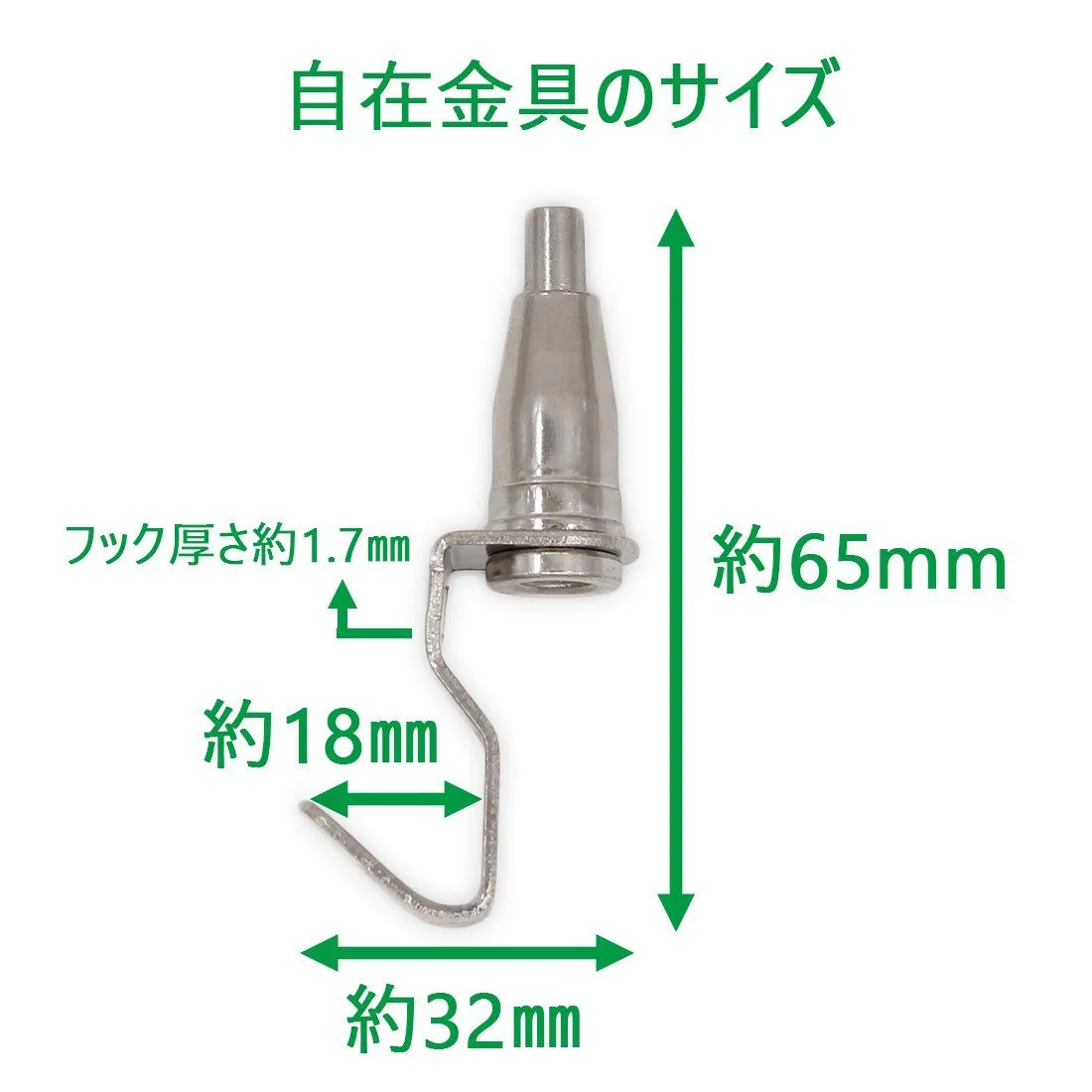 フック形状の調節自在金具とワイヤーがセットになった吊下げ金具です。