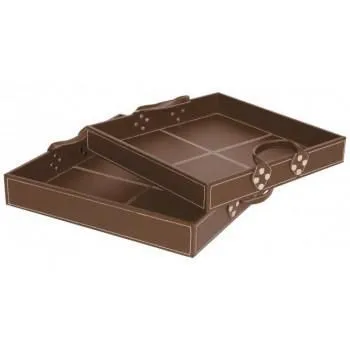 商品名:フェイクレザー トレー(BR)L・S 2個セット W380×H60×D380 40070