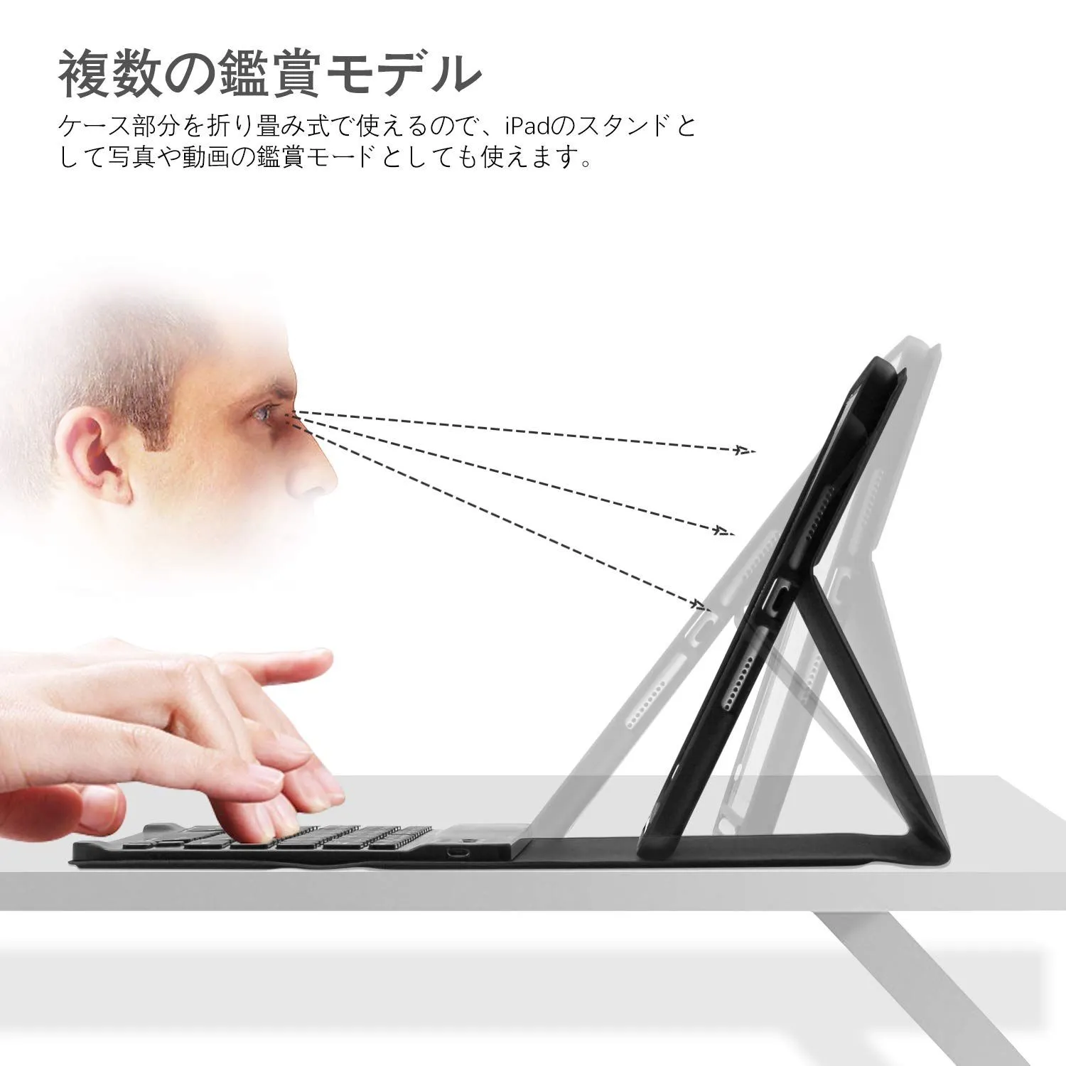 【複数の鑑賞モデル・品質】iPad 10.2対応キーボードケースは滑り止め設計があり、お好みな角度で映画などをお楽しむことがいただけます。本商品は1年安心品質がついております、遠慮なくお試してください。