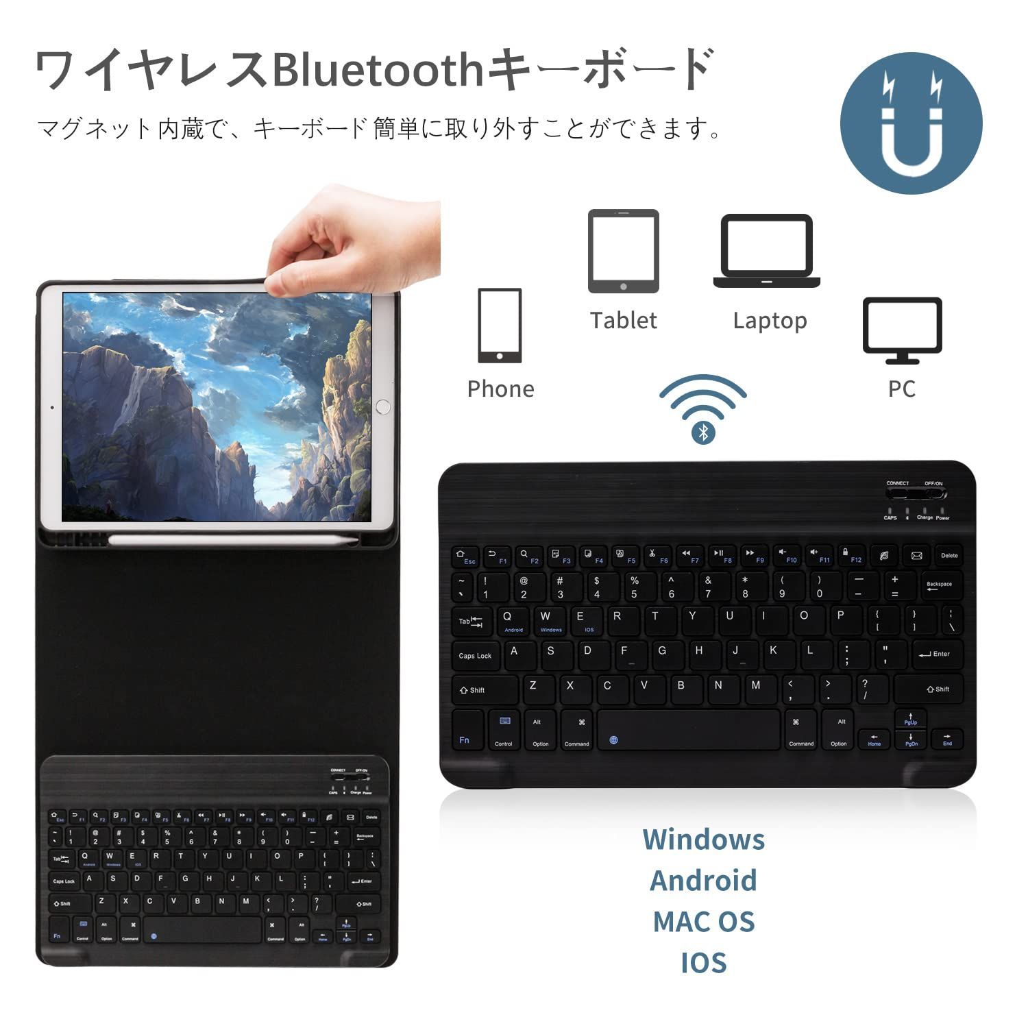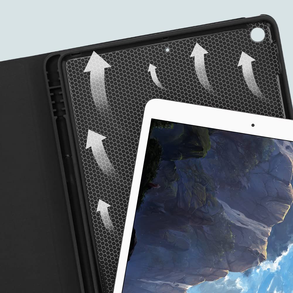 【Bluetoothキーボード+カバーでipadを守る】iPad 10.2 カバーはなめらかなゴムのようなPU製のため、手触りが抜群で、お使いのiPadが滑りにくくなり、より安心してお使いいただけます。ケース裏側には柔軟なハニカム3D構造を採用、放熱性が優れて電池寿命も延長されます。ケーブルなしのワイヤレスキーボードのキーは、パンタグラフ式構造で、打ちやすくなり、遅延せずに高精度で文字が入力できます。