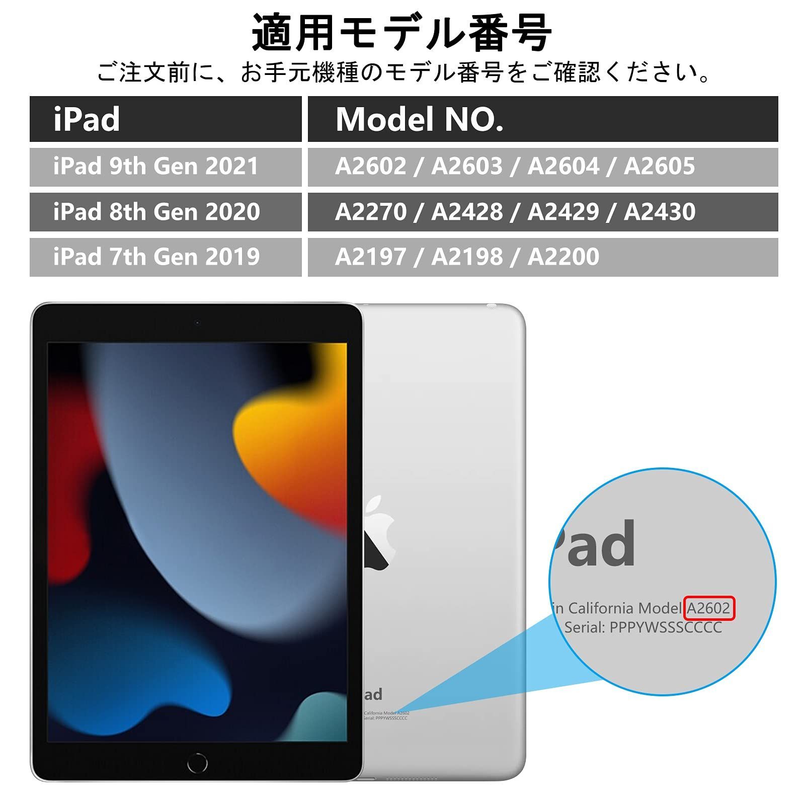 【カバー対応機種ご注意ください】本iPadキーボード付きケースはiPad第九世代(2021発売)第八世代(2020発売)第七世代(2019発売)iPad 10.2インチに専用して設計されました。専用だからこそipad全面的に精度よくフィットします。対応モデル番号はA2602、A2603、A2604、A2605、AA2270、A2428、A2429、A2430、A2197、A2198、A2200です。ご注文の際、お使いのiPadモデルをご確認ください。