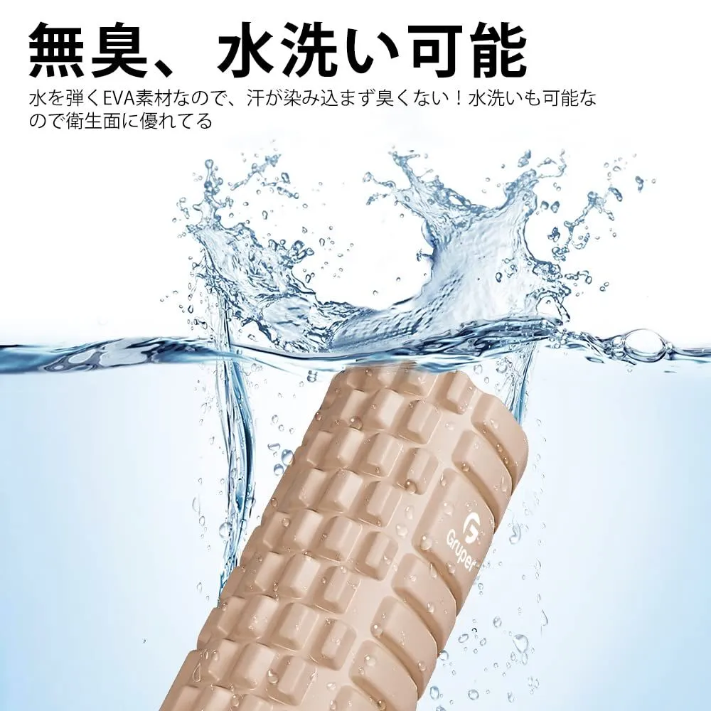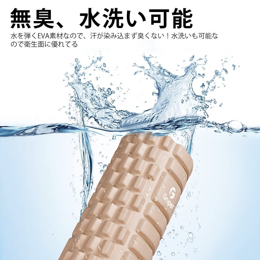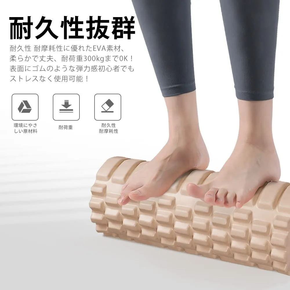 【内圏補強版】材質:耐久性に優れた高品質EVA素材(表面)+PP(中芯部) 表面は柔軟性、弾力性に優れるので、刺激や痛みが苦手な初心者にもオススメできます。内側は耐久性が高い補強版PP素材を使用しており、強度が十分あり、体重をかけても割れにくいです。フォームローラーは首、肩、背中、脇の下、腰、お尻、太もも、ふくらはぎ、足裏など全身に使えます。