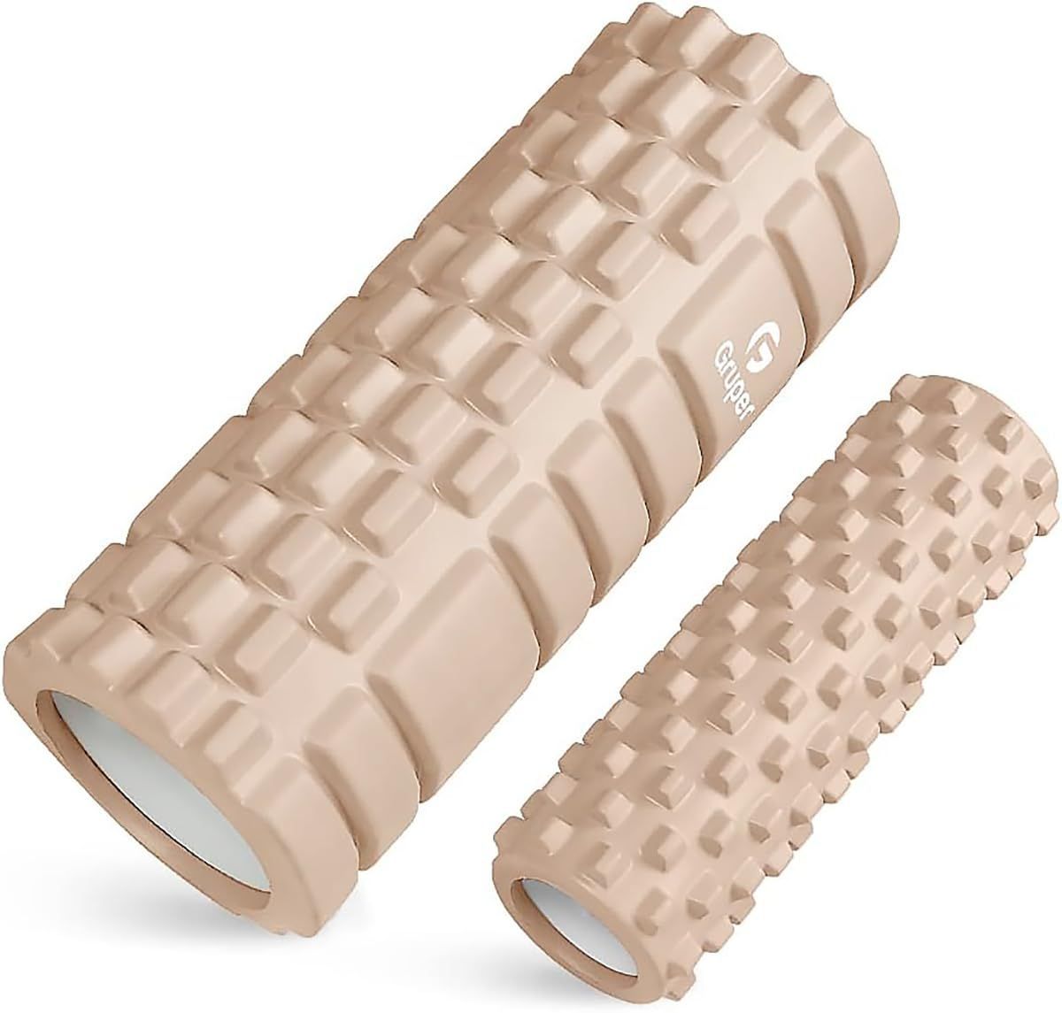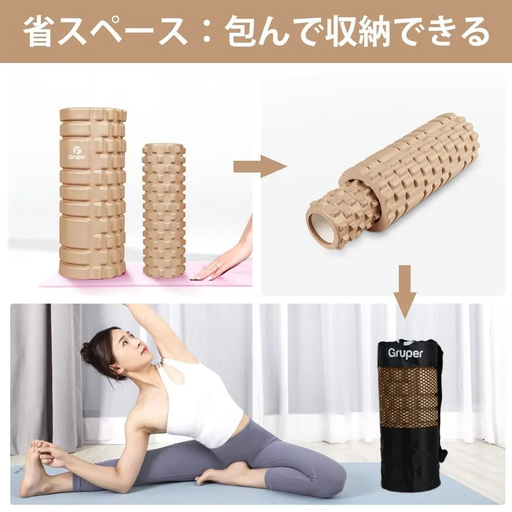 Gruperフォームローラー 筋膜リリース 大小2個セット 筋膜ローラー ストレッチローラー グリッドフォームローラー (カーキ)