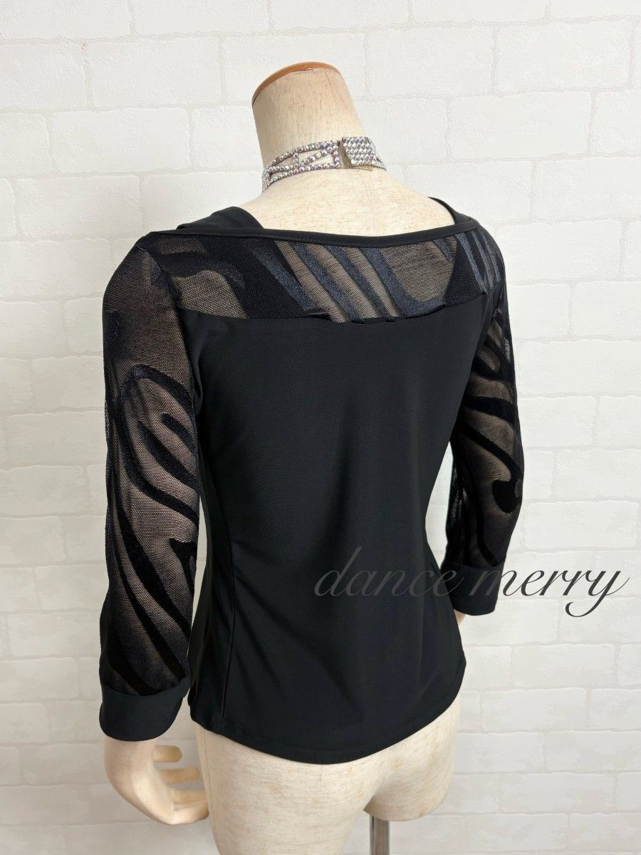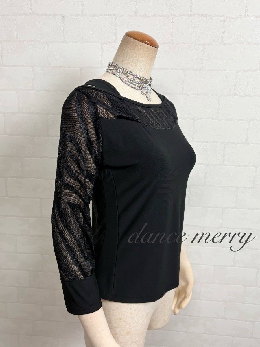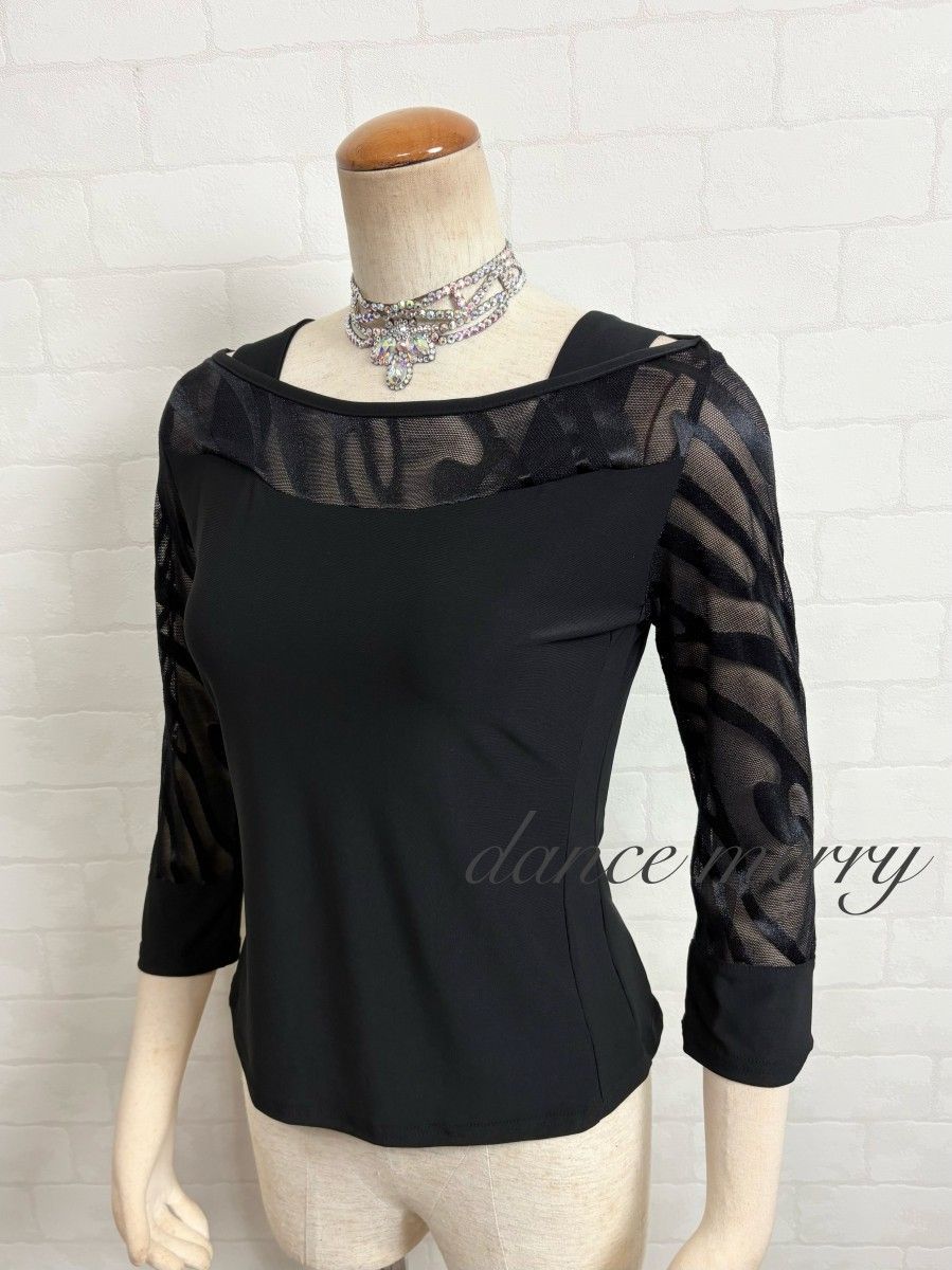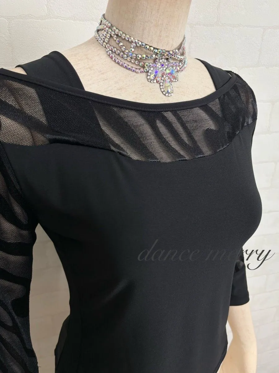 肌ざわりの良いストレッチ素材、メッシュを使用した社交ダンス トップスです。