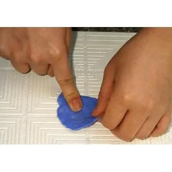 2.練り合わせた型取り剤を、模様面に平になるように、指先で押し付けます。