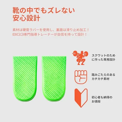 【優れた安定感:高重量でも潰れない高密度素材】 一般的な衝撃吸収インソールとは一線を画す、独自の「高密度ハードEVA」を採用。200kg以上のバーベルを担いでも沈み込まず、まるでスクワットシューズを履いた時のようなガッチリとした踏み心地を再現しました。パワーを地面に100%伝え、スクワットのパフォーマンスを最大化させます。