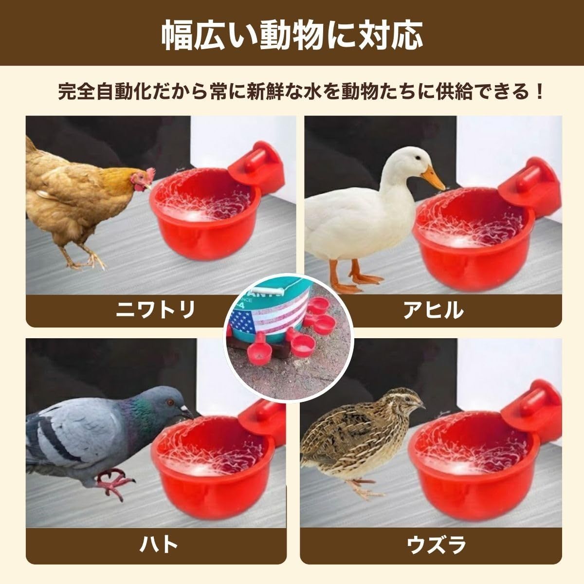 SALUDABLE 自動給水器 にわとり 鳥 水入れ ペット簡単設置 鶏 アヒル 飼育 水飲みカップ (6個セット)