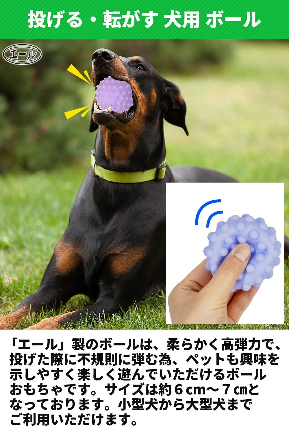 「エール」製のボールは、柔らかく高弾力で、投げた際に不規則に弾む為、ペットも興味を示しやすく楽しく遊んでいただけるボールおもちゃです。サイズは約6cm~7㎝となっております。