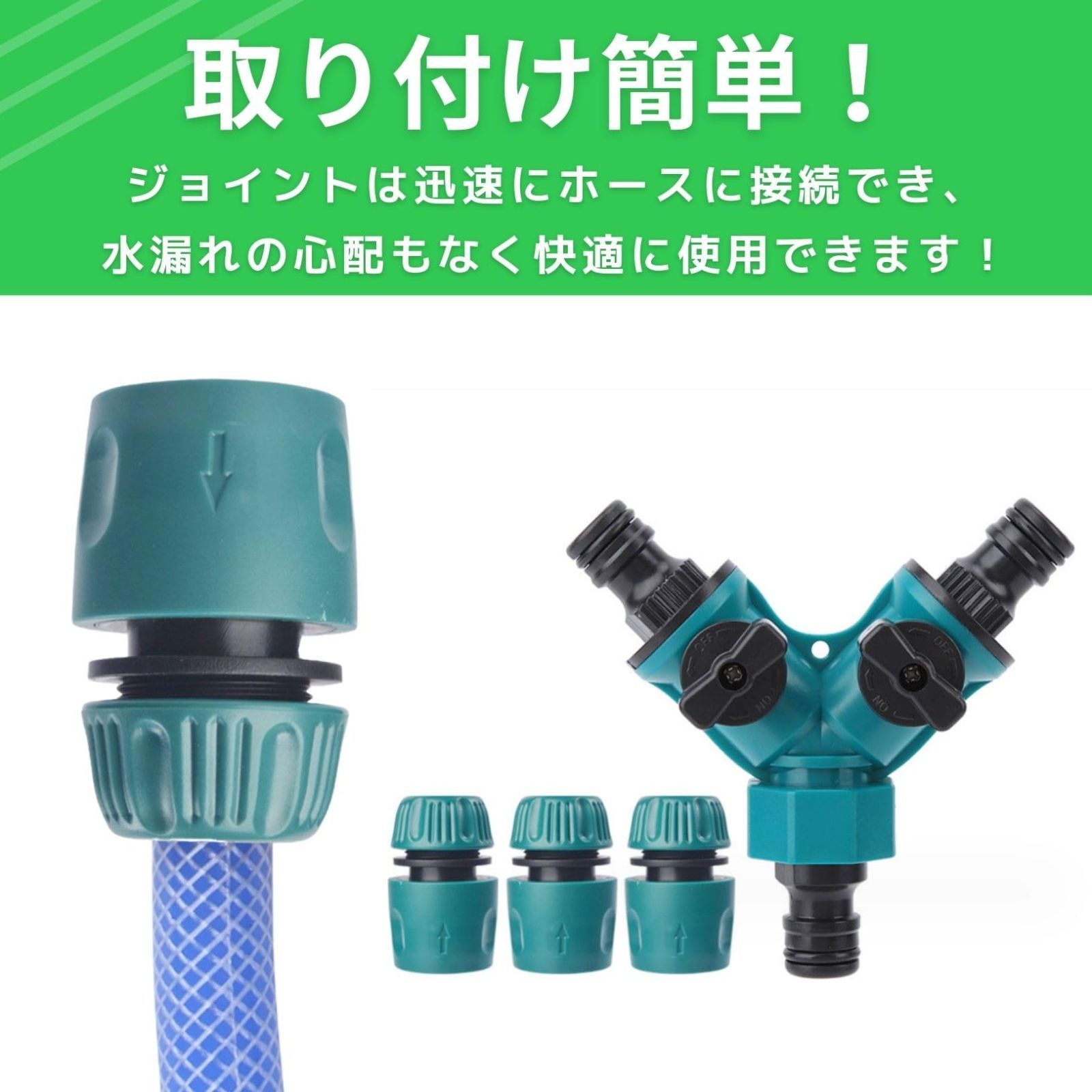 【簡便な取り付け】ジョイントは迅速かつ確実にホースに接続でき、水漏れの心配がありません。1つの水流を分岐させ、お客様の使用ニーズに応えます。