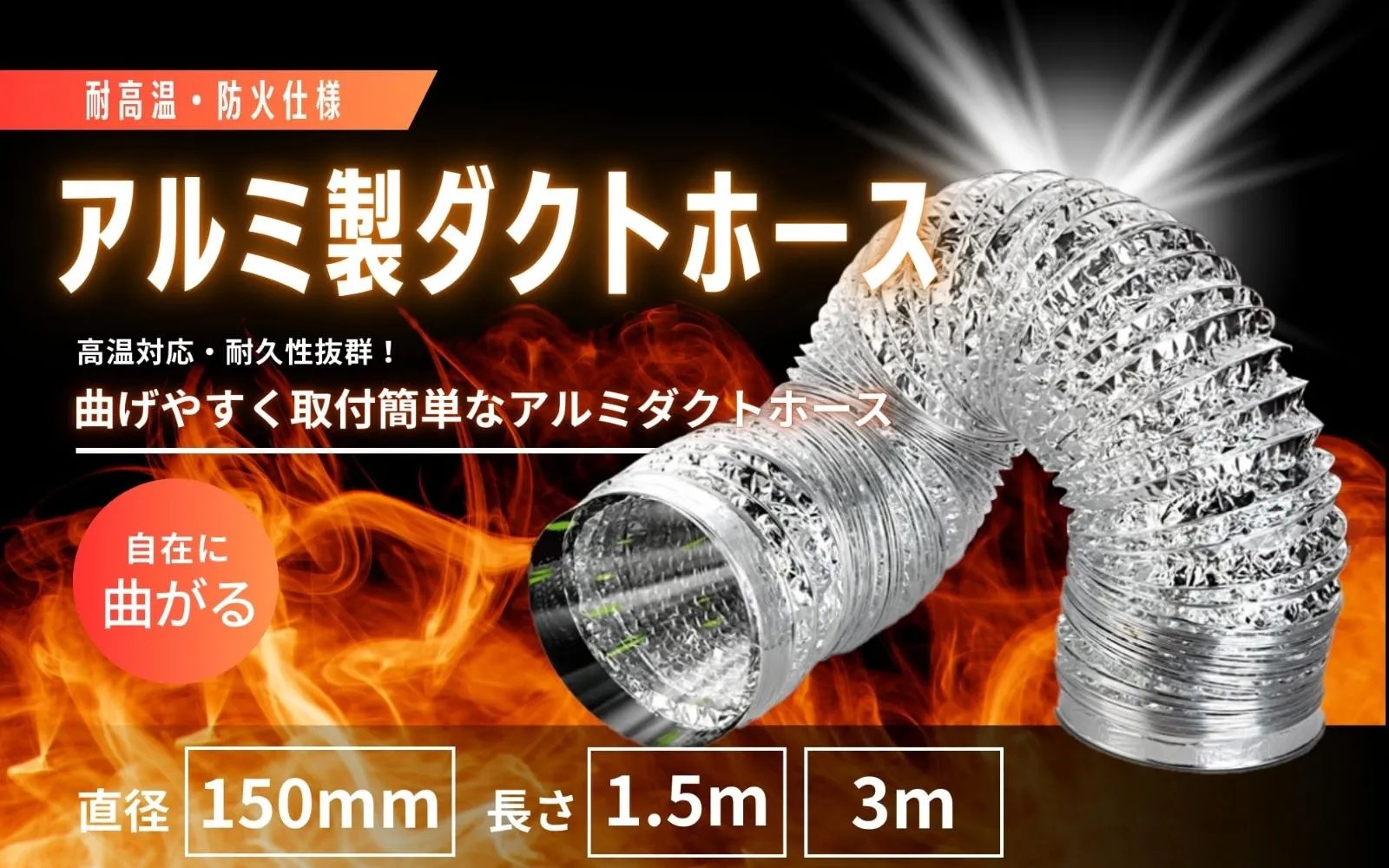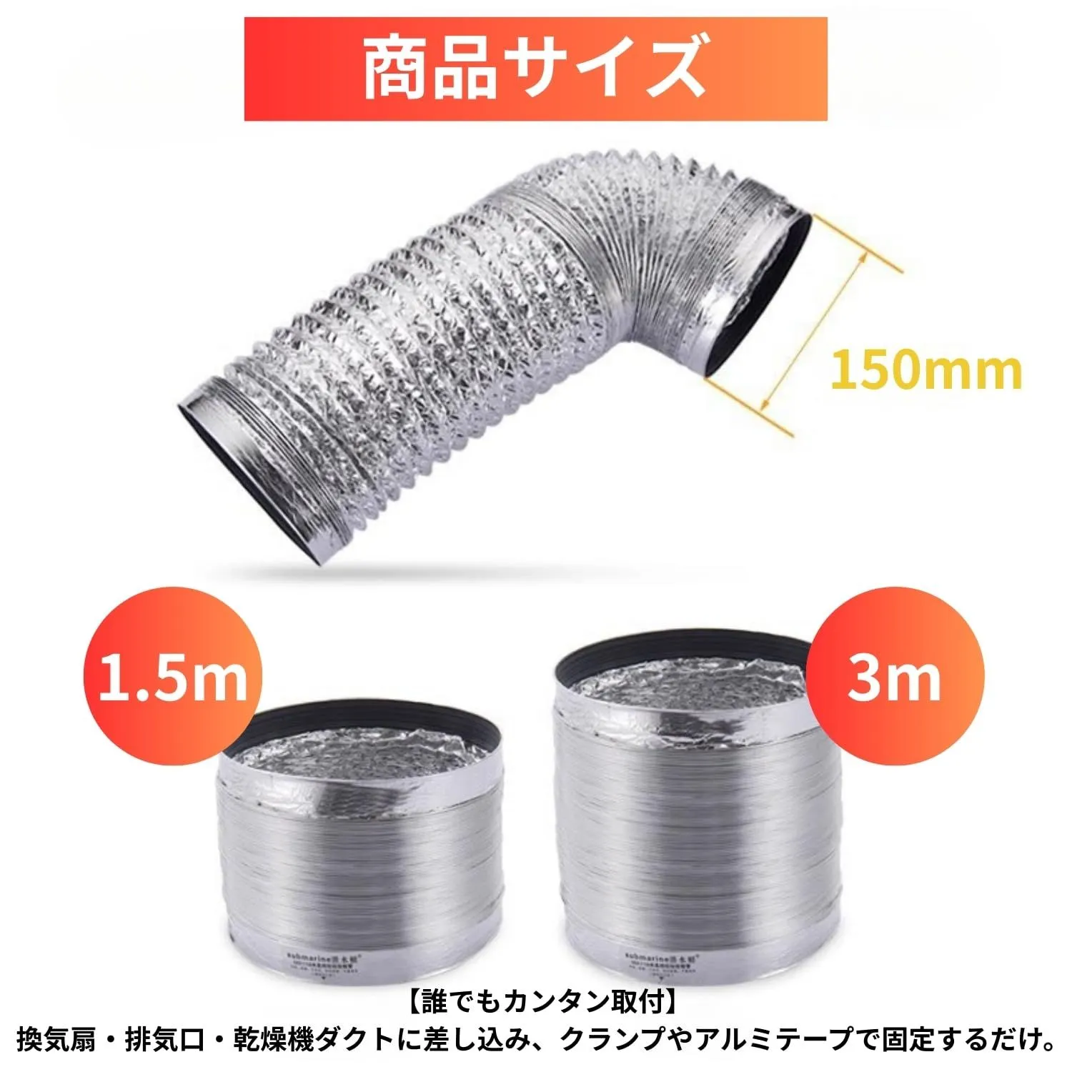 【選べる3サイズ展開】直径150mm、長さ1.5m/3m/5m。換気扇や乾燥機の排気に簡単取付。