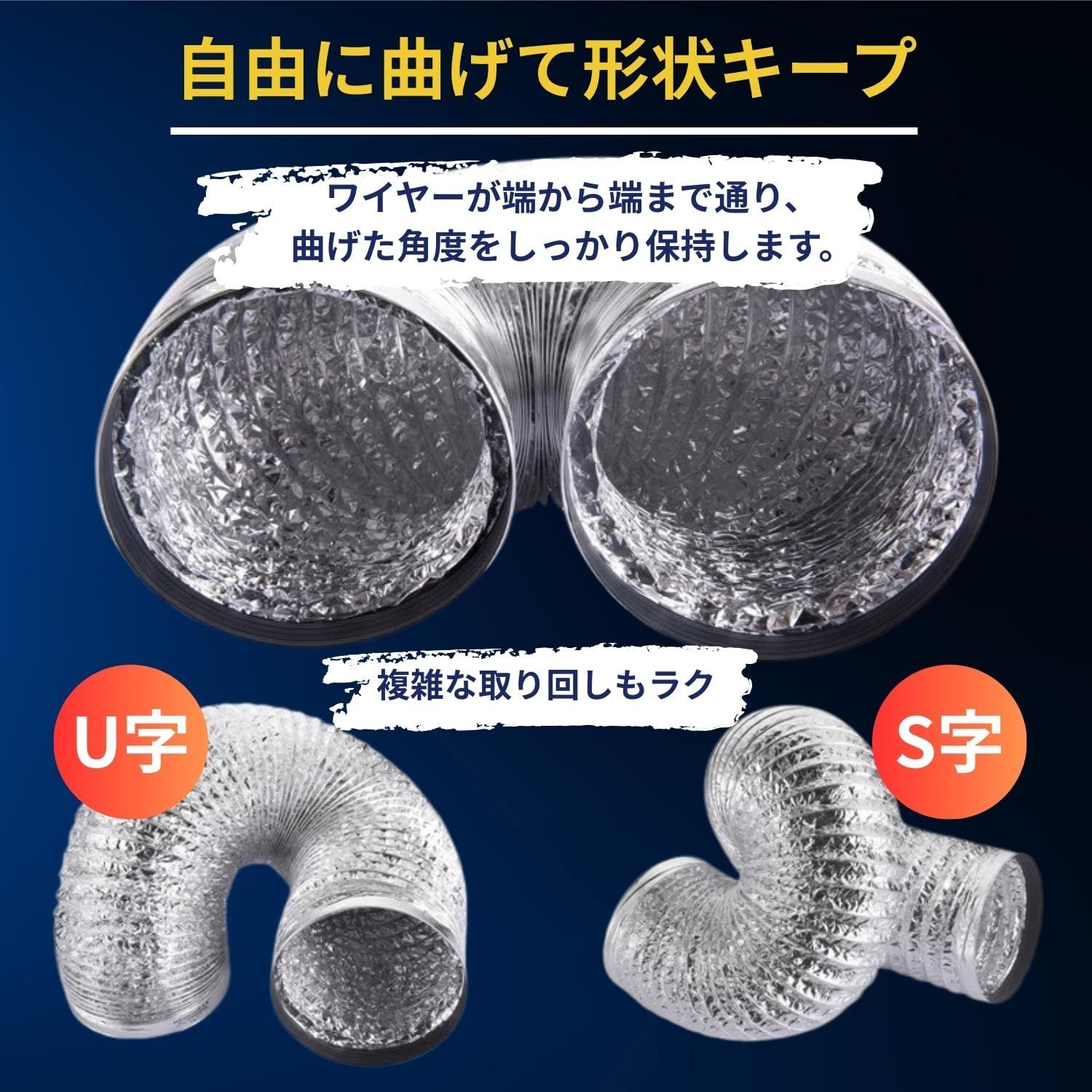 【曲げやすく取付簡単】曲げやすく取付簡単なアルミダクトホース。長さは3種類あります。