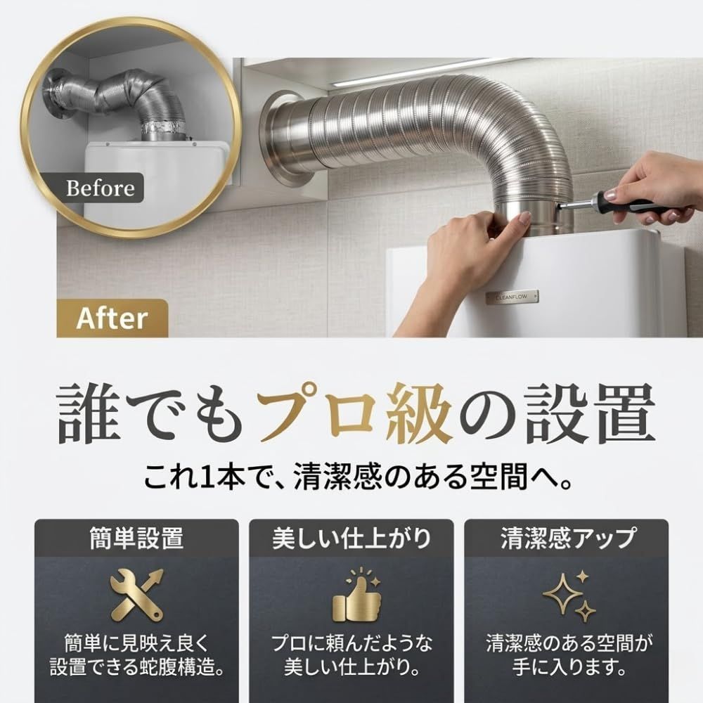 【プロ級の仕上がり】素人でも簡単に見映え良く設置できる蛇腹構造。まるでプロに頼んだような美しい仕上がりで、清潔感のあるキッチンや作業場が手に入ります。